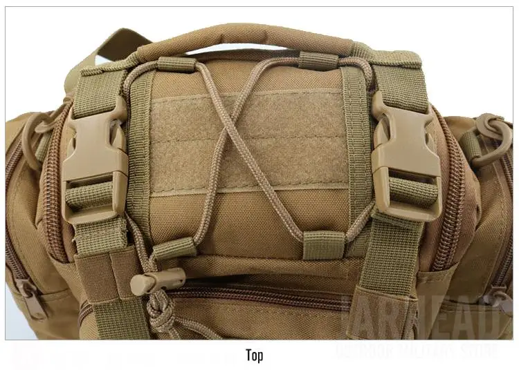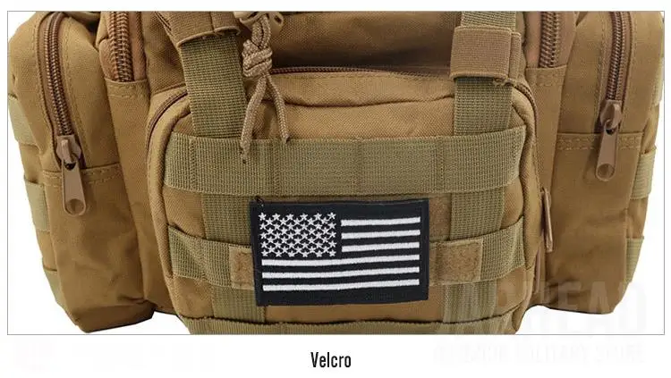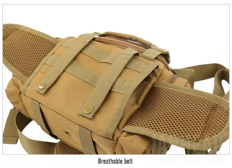 Características: Sistema MOLLE, puede colgar otras bolsas pequeñas, es más conveniente de usar, ¡puede pegar los aros y bucles en la mochila y tener más personalidad! Adjunto a ambos lados, puede almacenar más cosas, con una correa para el hombro en el medio y un algodón grueso en la parte posterior.