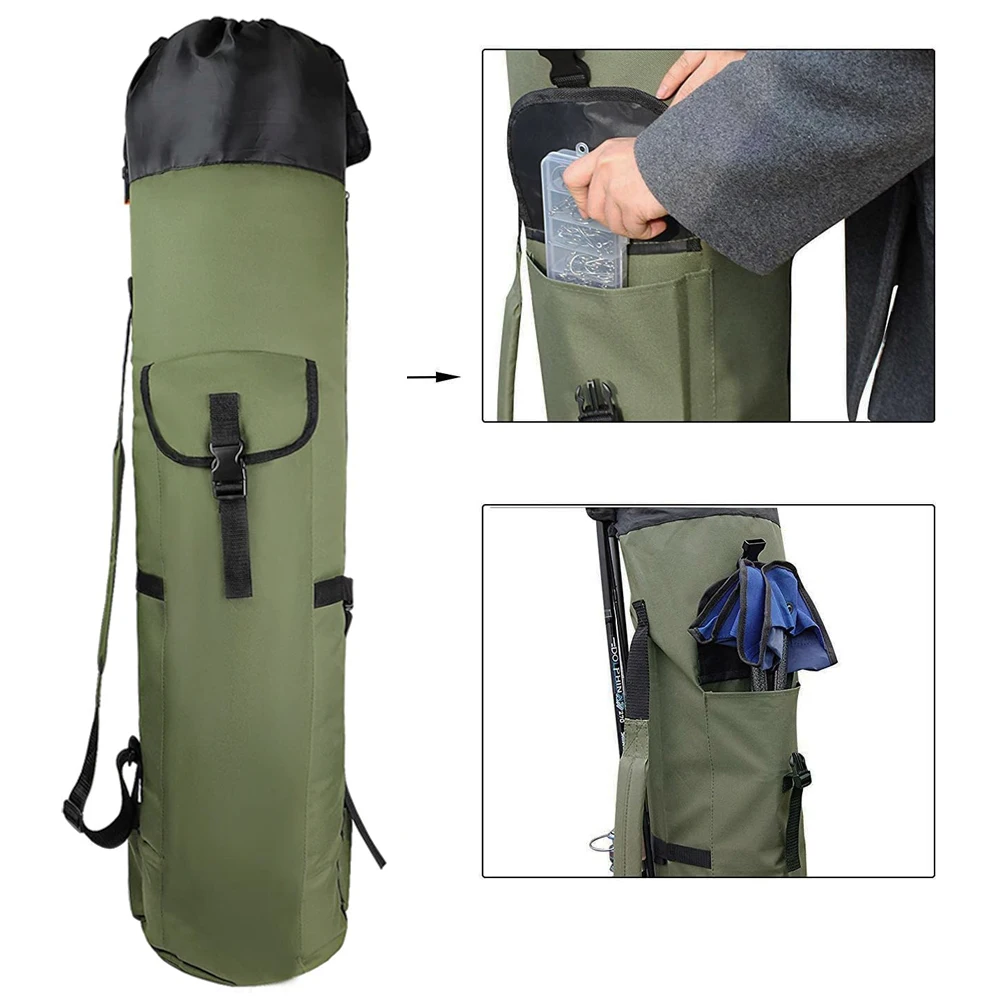 La bolsa porta cañas de pescar tiene un gran bolsillo exterior con cierre para elementos esenciales y 1 bolsillo lateral para aparejos de pesca.Ahorre tiempo y energía para organizar.
