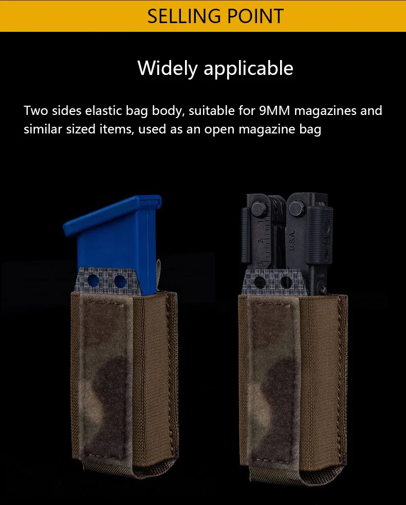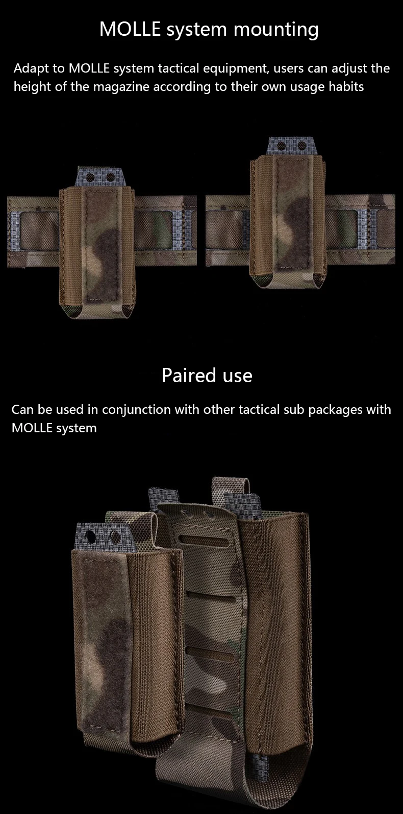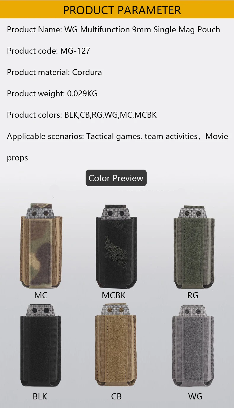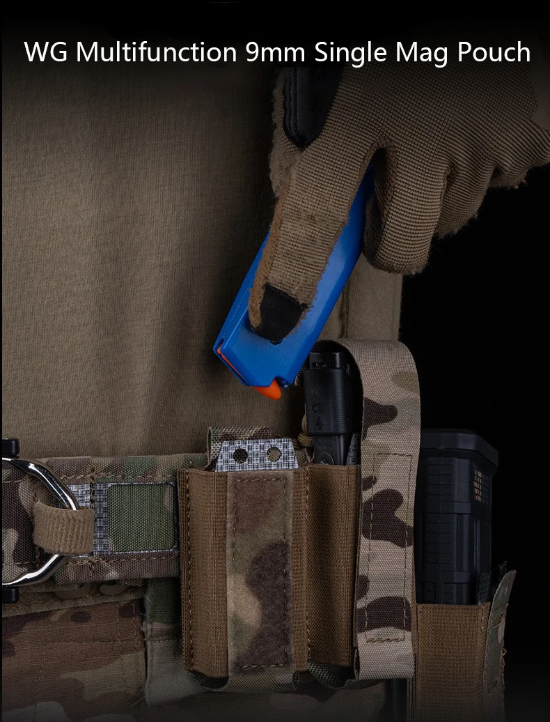 Bolsa para cargador individual multifunción WG de 9mm, ampliamente aplicable, mango de cuerda elástica, montaje del sistema MOLLE, funda de bolsa reemplazable