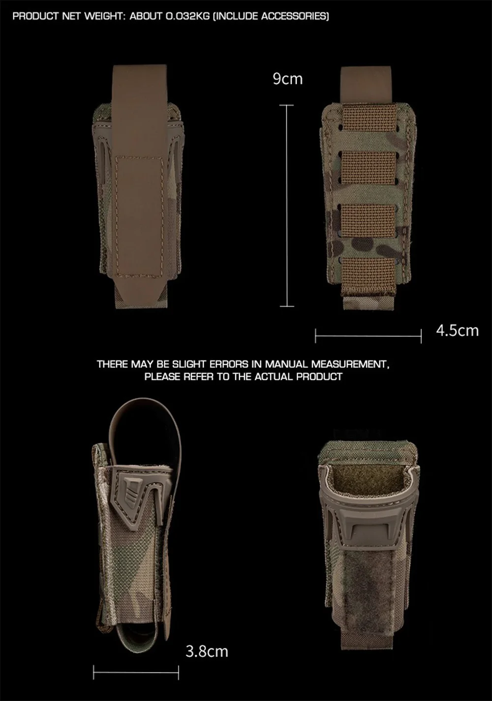 OPHIDIAN-Bolsa para cargador de pistola de 9mm, bolsa multifunción ajustable con función de combate Molle para caza al aire libre, Airsoft, Paintball, tiro
