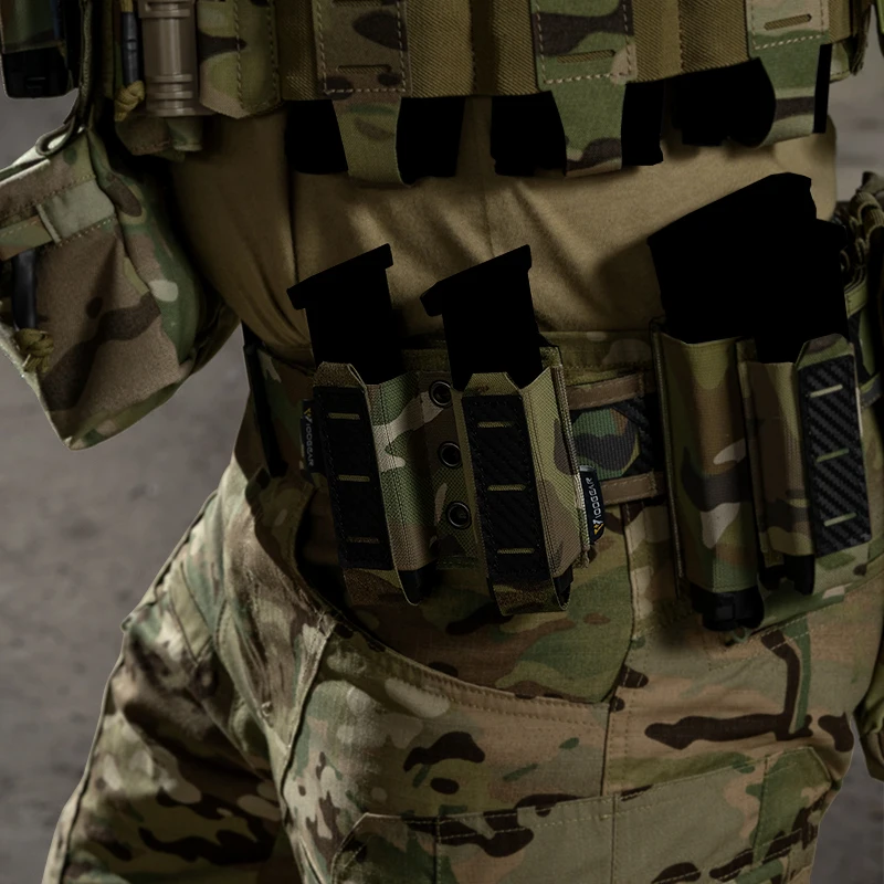 Bolsa de cargador táctica de Extracción rápida, patrón de fibra de carbono Dual de 9MM, herramienta multiusos Molle