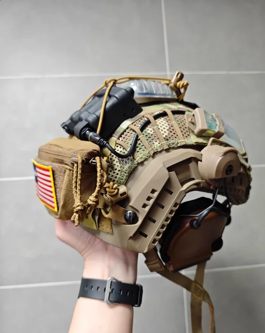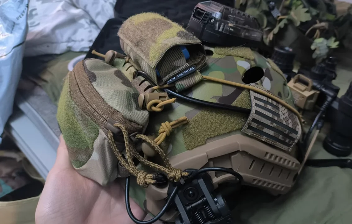 Se puede utilizar para almacenar artículos necesarios para el uso del casco, como baterías, toallitas para lentes, contrapesos, paquetes de baterías, redes de camuflaje, etc.