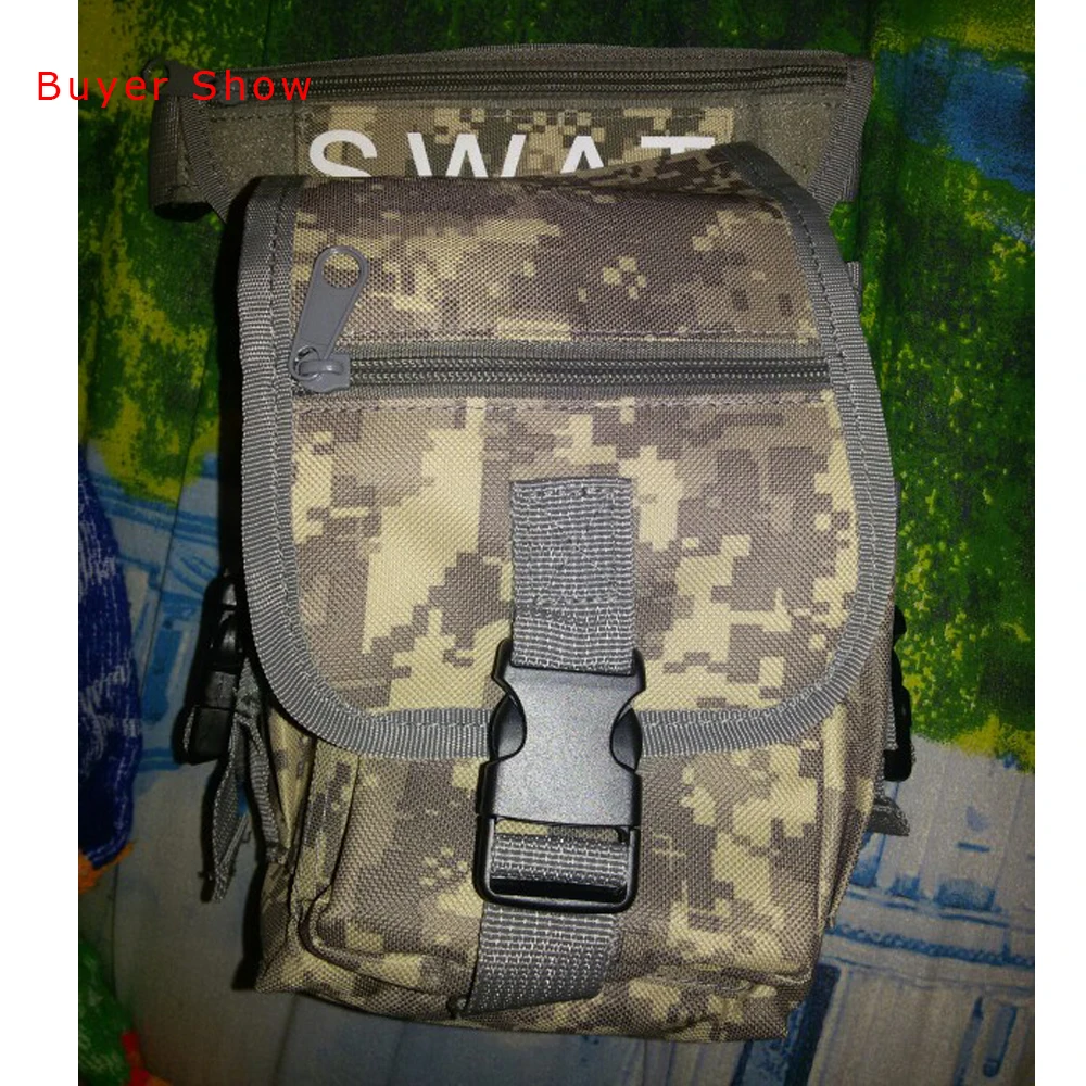 Made by high density nylon material. Patch can be attached on the front. 3 zipper compartments, 2 flashlight/magazine pouches. 1 compartment on the back. Plenty of pouch for storing. With adjustable waist and drop leg straps (detachable). Perfect for outdoor war game activities.