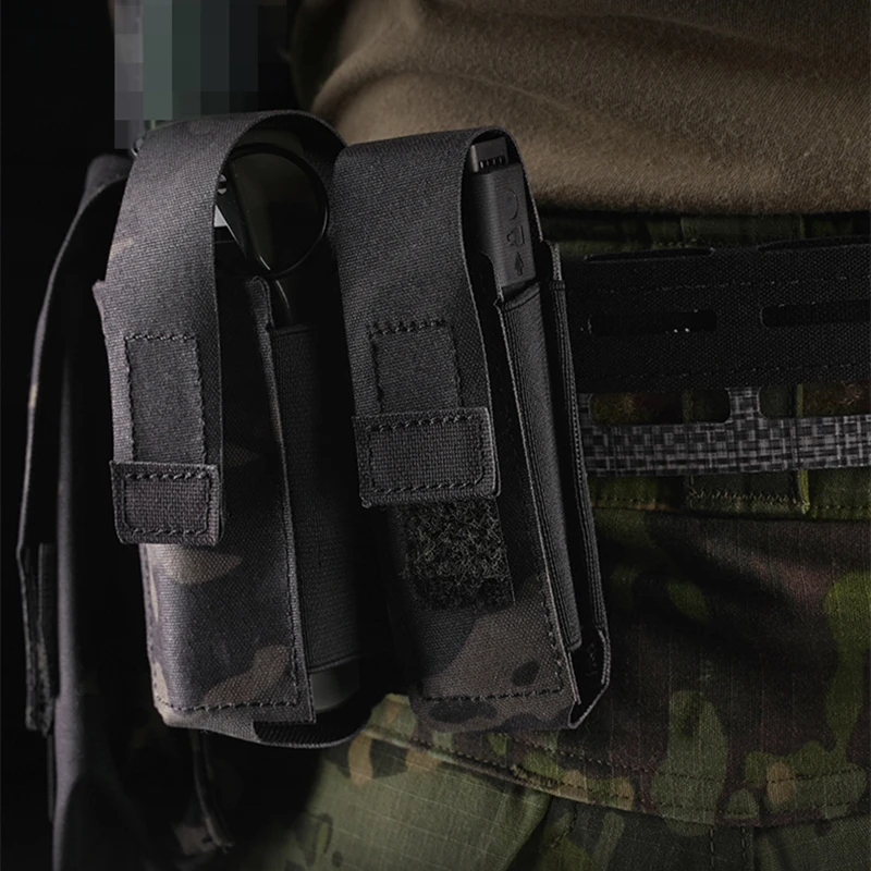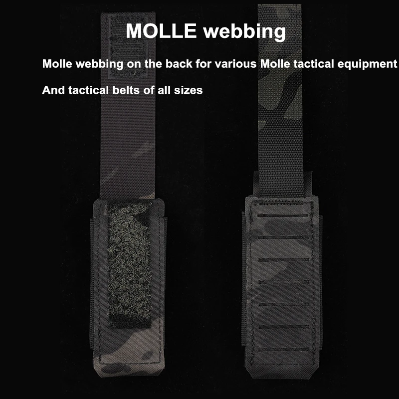 2. Tejido elástico en ambos lados de la bolsa MOLLE: El tejido elástico puede adaptarse a cualquier forma del contenido y fijarlo en su lugar. La funda de spray de pimienta MOLLE se puede utilizar no solo como soporte de pulverizador OC, sino también como bolsa de Granada de aturdimiento M84, bolsa de bomba Flash, soporte de radio de mano pequeño para caza y bolsa de revista de 9mm.