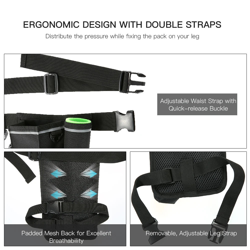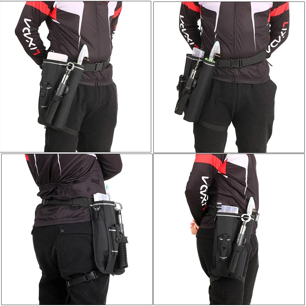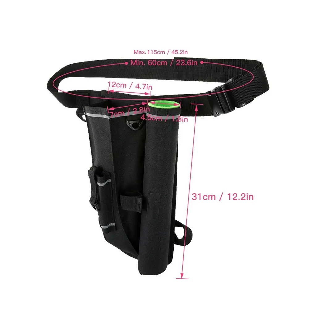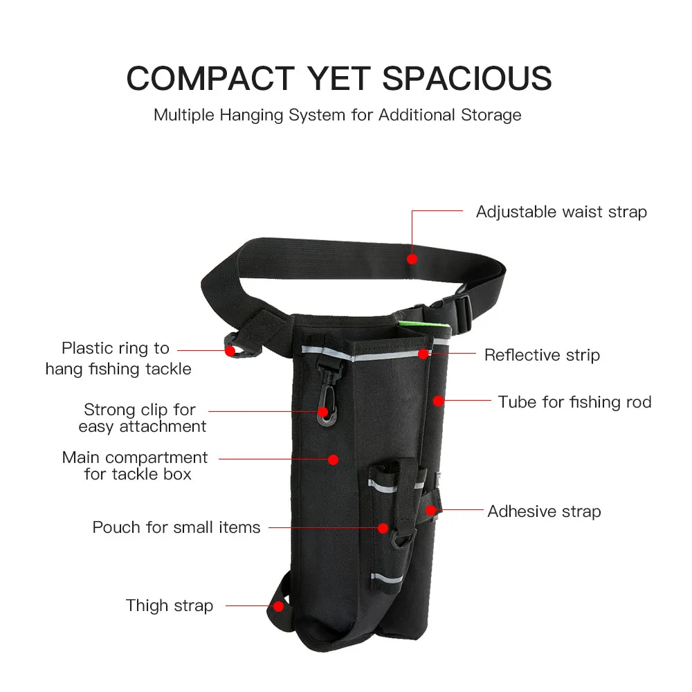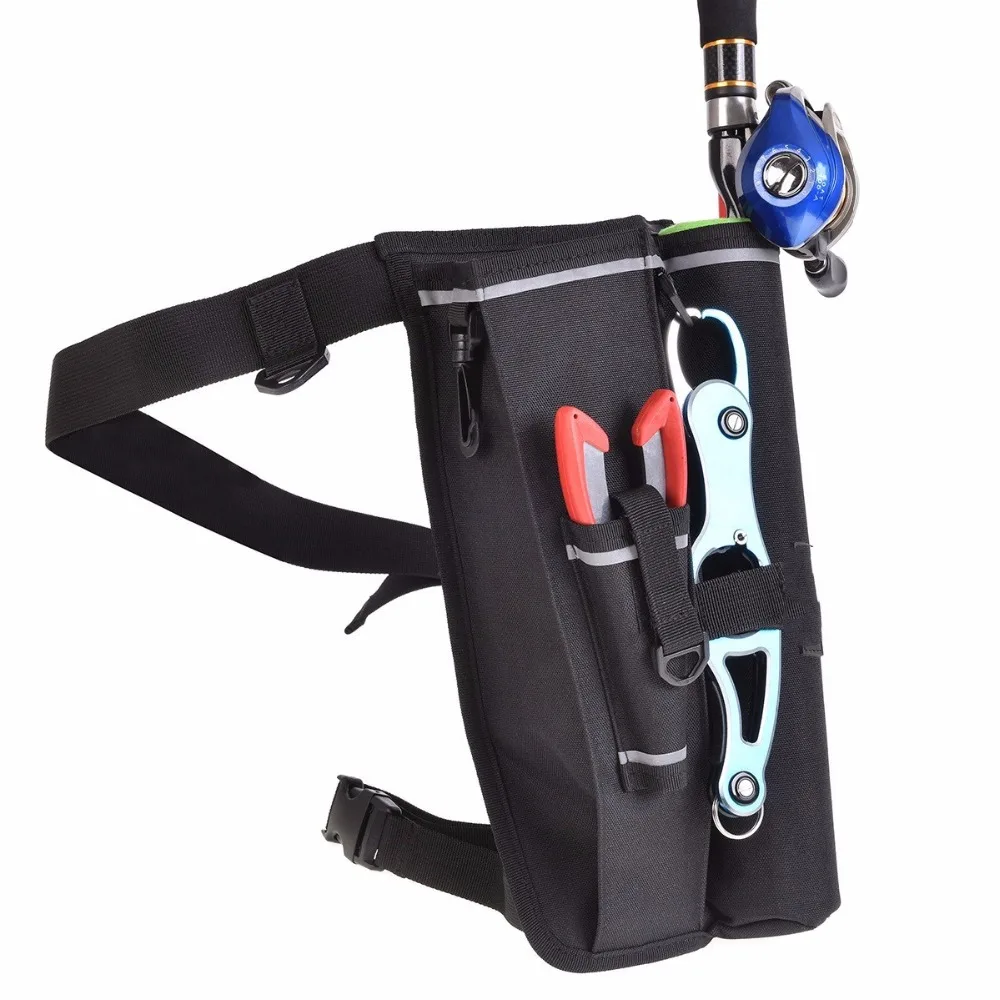 Esta bolsa de pesca está diseñada para sujetar su caña de pescar y sus accesorios. Fija la bolsa en la cintura y el muslo para liberar tus manos, una gran opción para los pescadores.