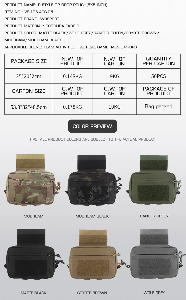 Bolsa de chaleco táctico, bolsa abdominal inferior, bolsa de accesorios inferior R GP (8x5), bolsa colgante de equipo, actualización de accesorios
