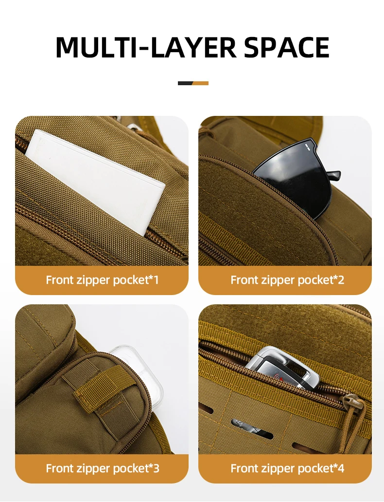 2. Múltiples bolsillos con cremallera en el cuerpo de la bolsa, bolsillos frontales con cremallera, almacenamiento dividido, fácil acceso