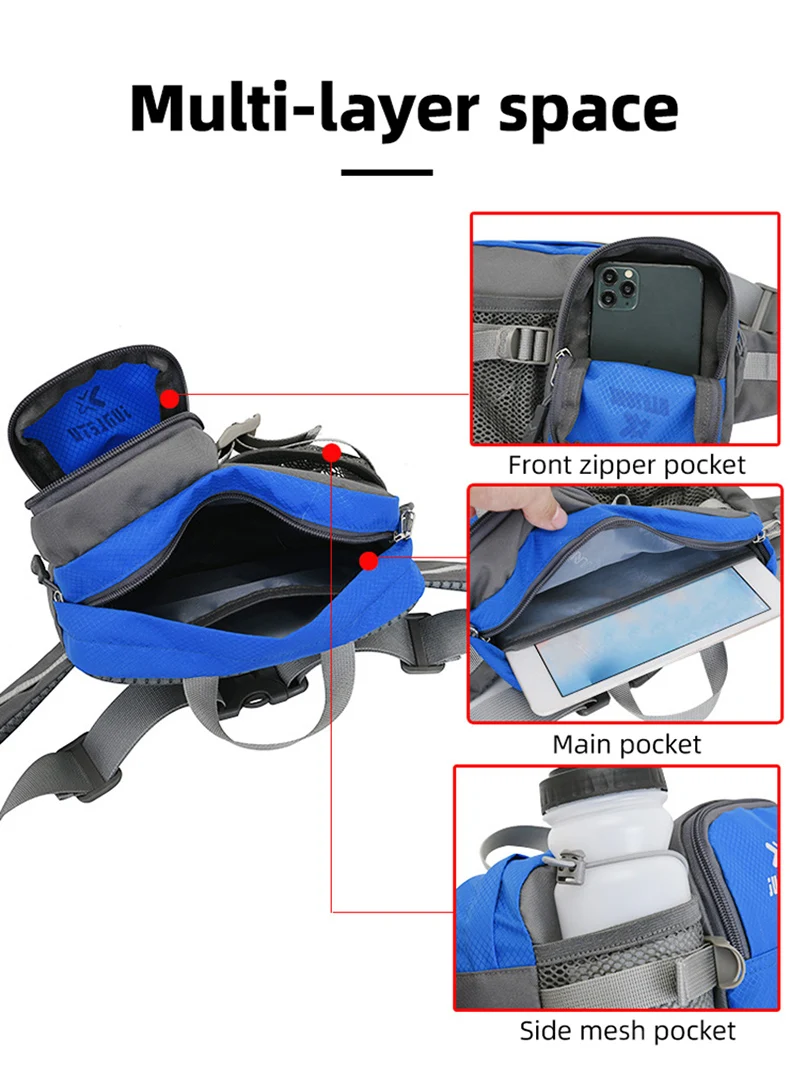 Riñonera multifuncional para botella de agua, senderismo, viajes, gran capacidad, deportes al aire libre, correr, caminar, perro, riñonera para teléfono móvil