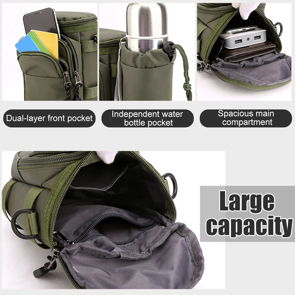4.Tres opciones de transporte: cruzado, de un solo hombro o montado en la cintura, liberando tus manos y reduciendo la sensación de peso.