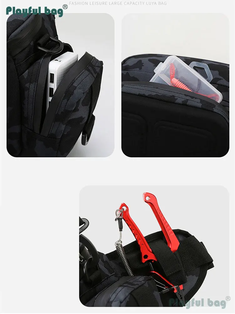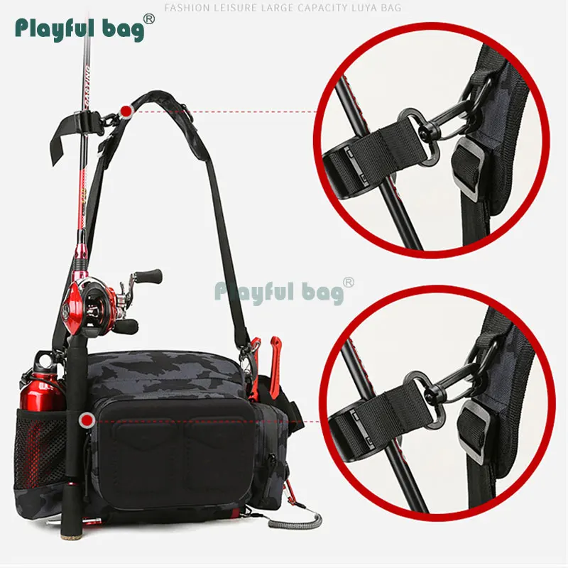 Material: tela de OxfordTamaño: 37cm de ancho, 22cm de alto, 19cm de grosor.Peso: 0,62 kgUso: viaje, pesca