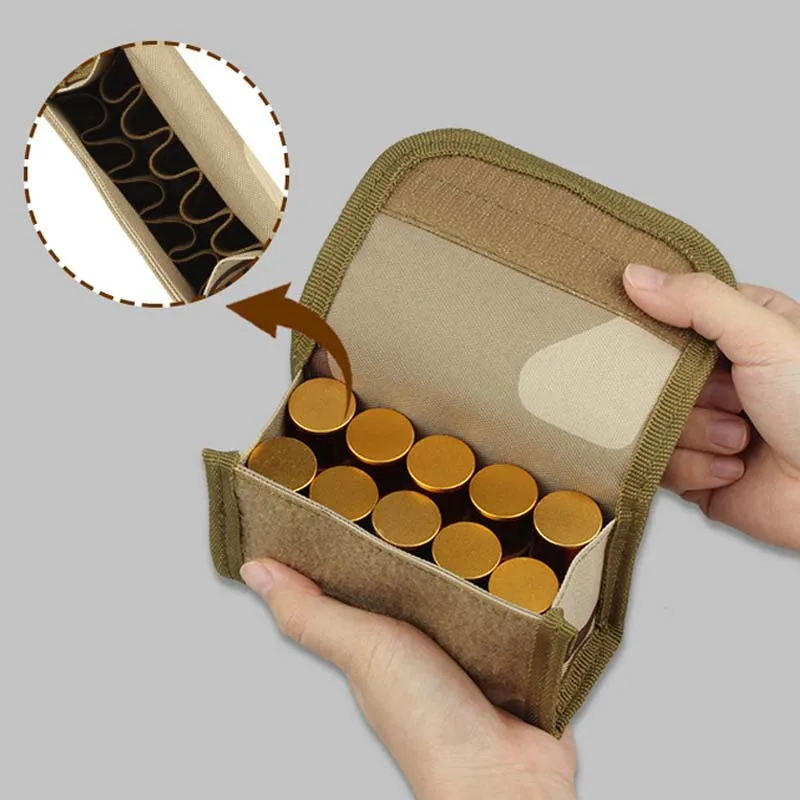 Táctico 10 redondo Molle Bullet Shell recarga soporte almacenamiento cinturón bolsa para caza calibre 12/20 munición cargador cartucho portador