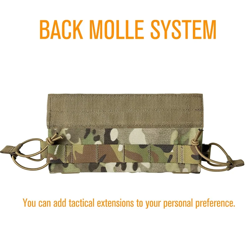 2. El módulo molle trasero puede montar otros suministros tácticos de cinta molle;