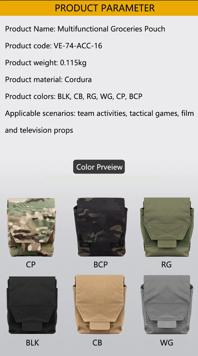 Bolsa de comestibles de camuflaje multifuncional, sistema Molle portátil de 5,56/9mm, bolsa de almacenamiento de corte láser, Kit de subbolsa táctica Molle