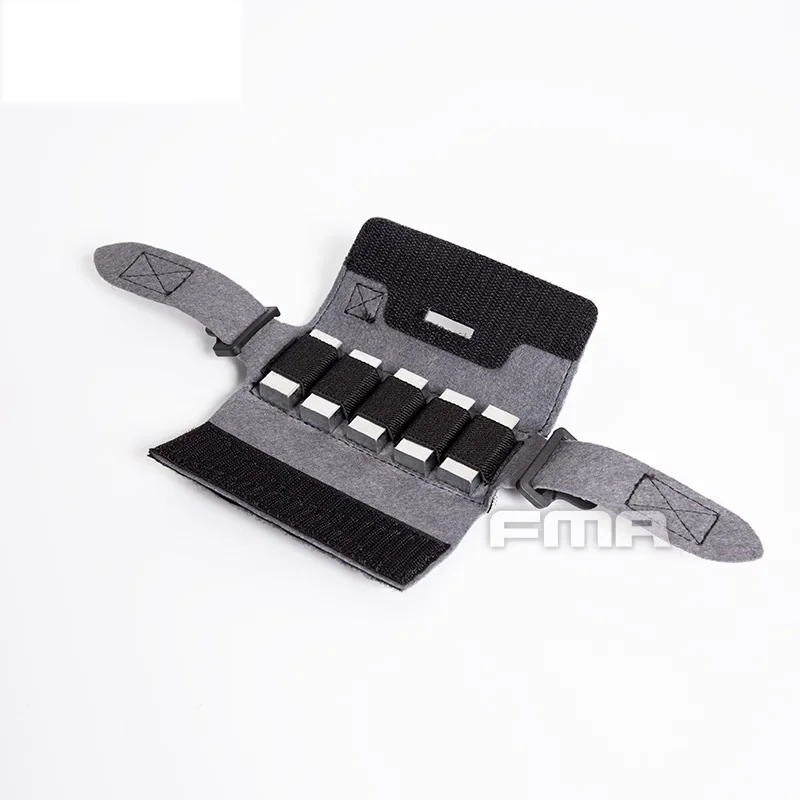Counterweight Kit is a customizable weight management system with five (5) 70g removable weights that fit into five elastic pockets. Designed for use on helmets outfitted with ARC Rails, the total weight of the system is 0.3kg. Each internal elastic pocket can stretch to fit one or two weights. When one weight is installed, the elastic can stretch further to accommodate a battery as well for dual purpose storage. the elastic can fit AA, AAA, or 123 batteries.