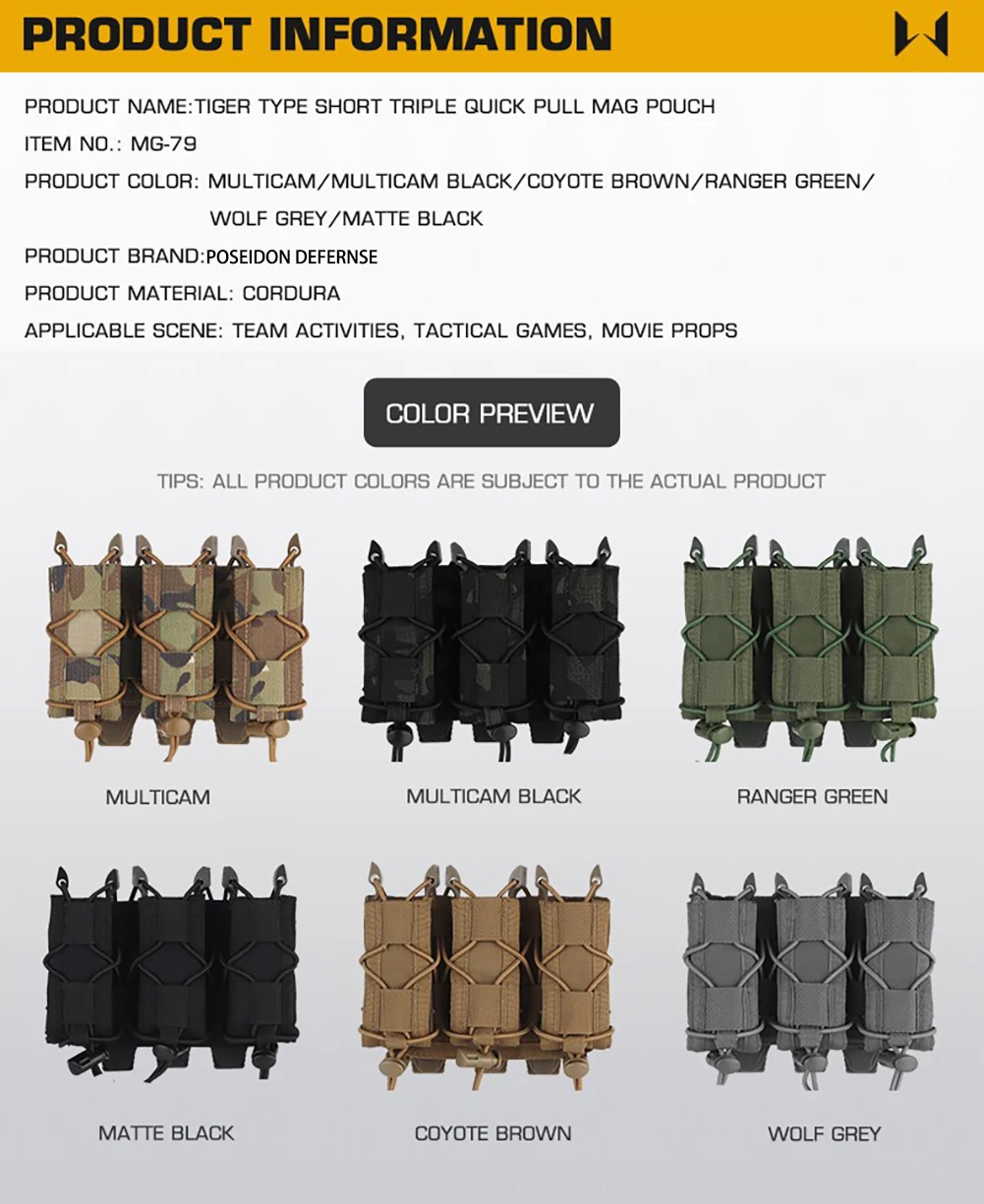 Bolsa corta de doble Mag tipo tigre, portador de revistas de pistola para equipo de linterna, cinturón Molle, chaleco para disparar Airsoft