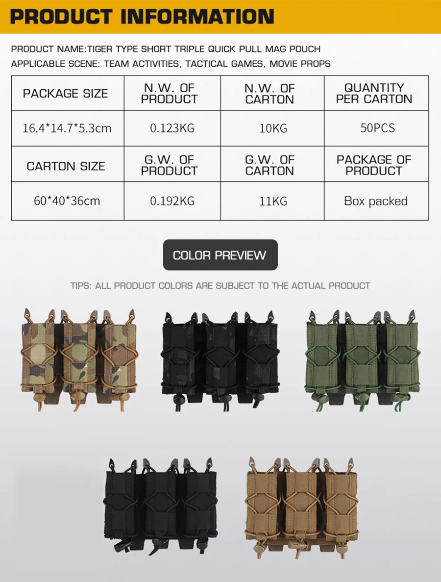 Nombre: Bolsa magnética corta triple de extracción rápida tipo tigre de 9 mm