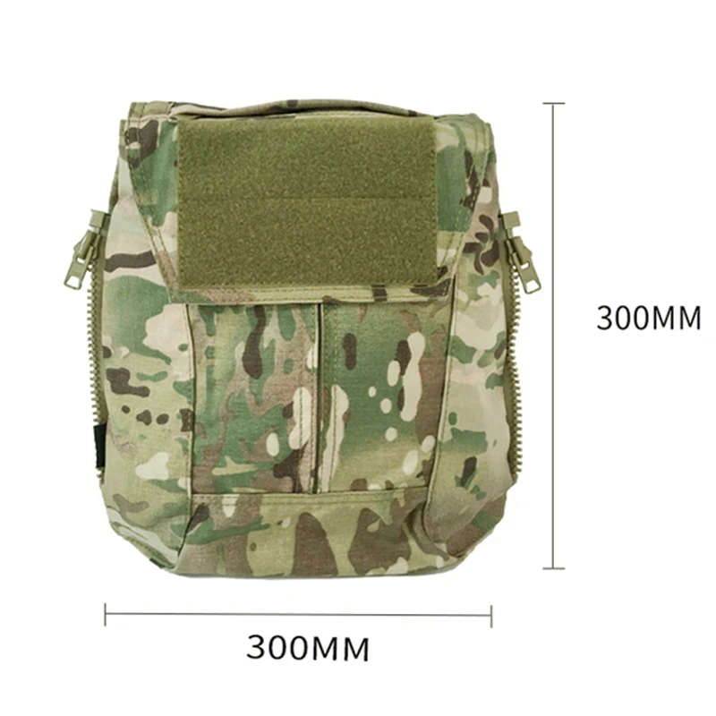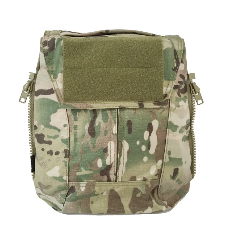 Se puede conectar al chaleco/soporte de placa a través de cremalleras y hebillas en la espalda