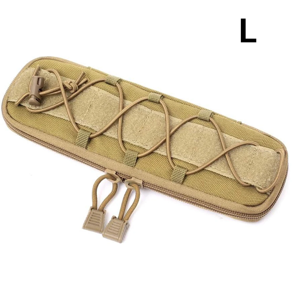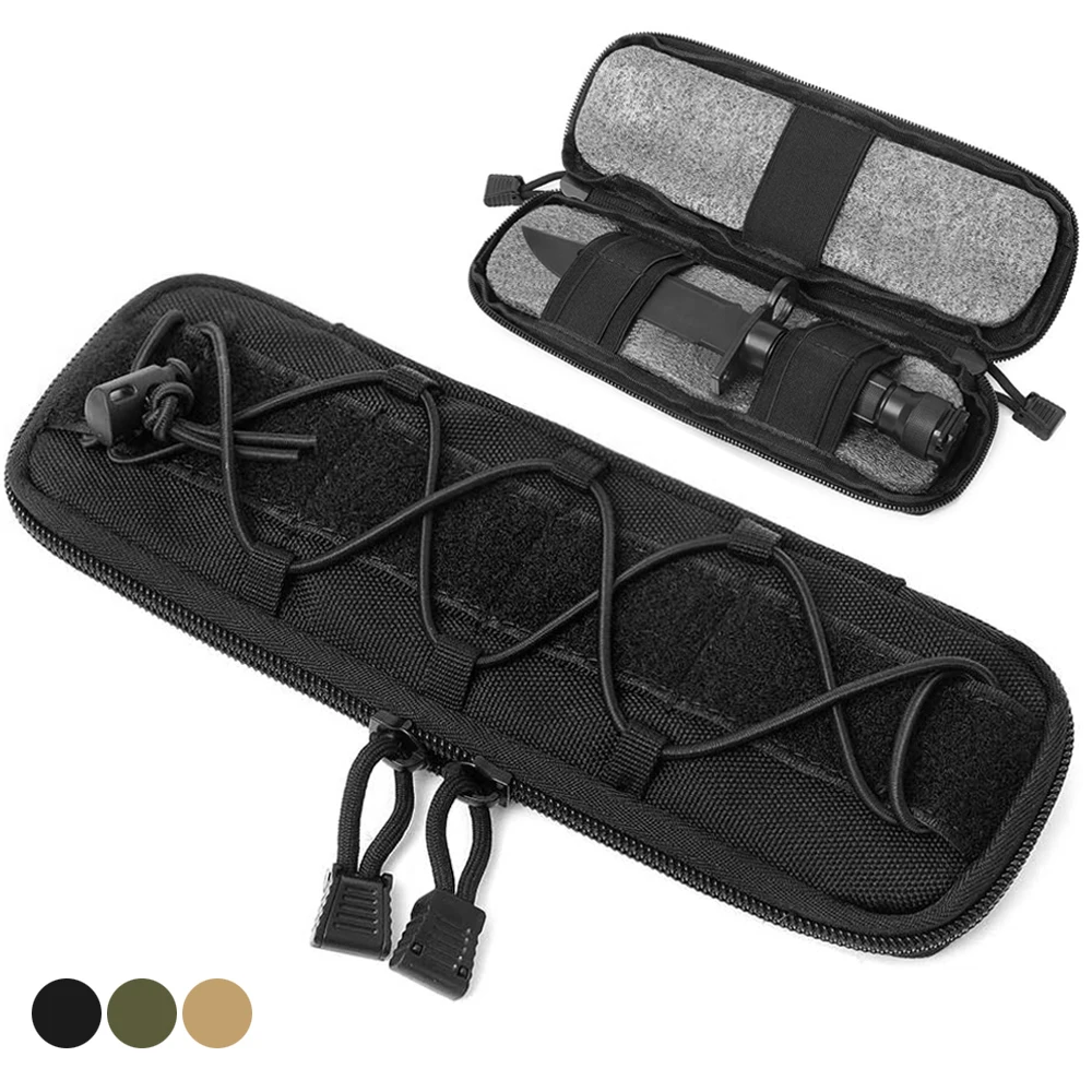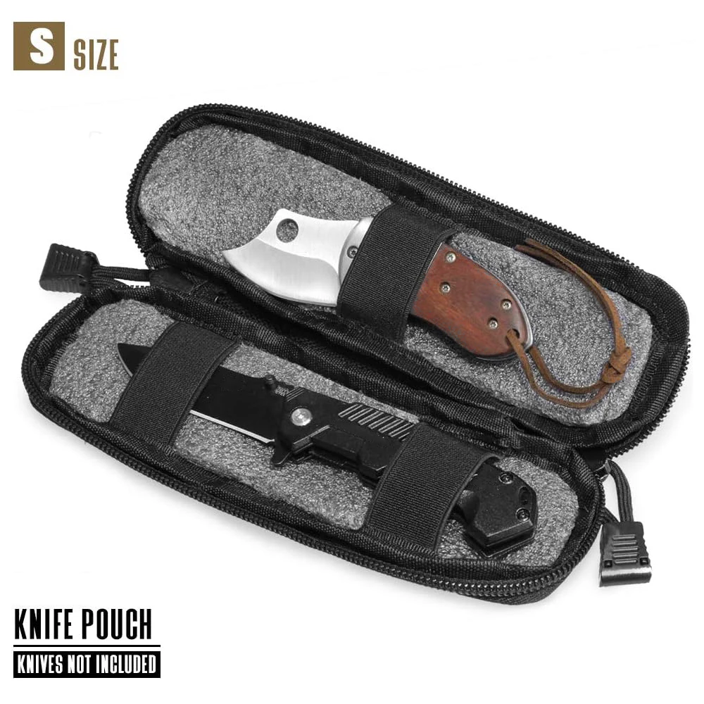 Ofrecemos tamaños grandes y pequeños para usted: Tamaño grande: 10*3,5*1,2 pulgadas; Tamaño pequeño: 8*2,8*1,2 pulgadas.Para herramientas o accesorios pequeños como cuchillo táctico, alicates, mini linternas, destornilladores pequeños, cuchillo plegable de carga, cuchillo herramienta suizo, tijeras EMT plegables, etc.