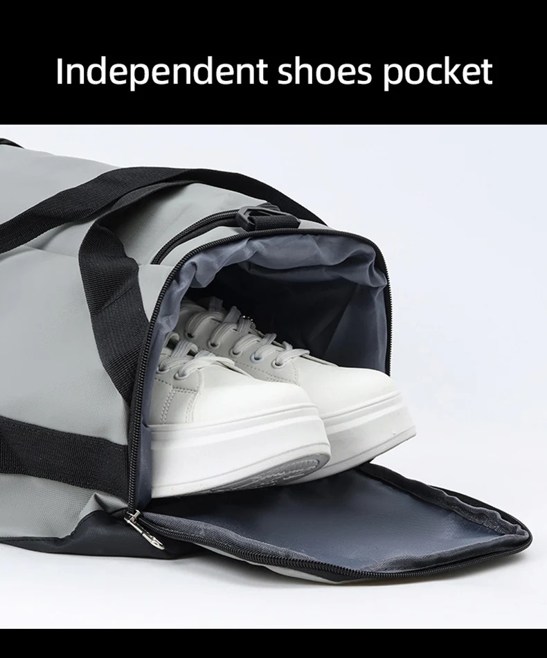 1. Configuración de bolsillo principal de gran capacidad, bolsa separadora húmeda/seca incorporada con compartimento separado para zapatos.