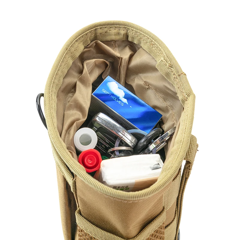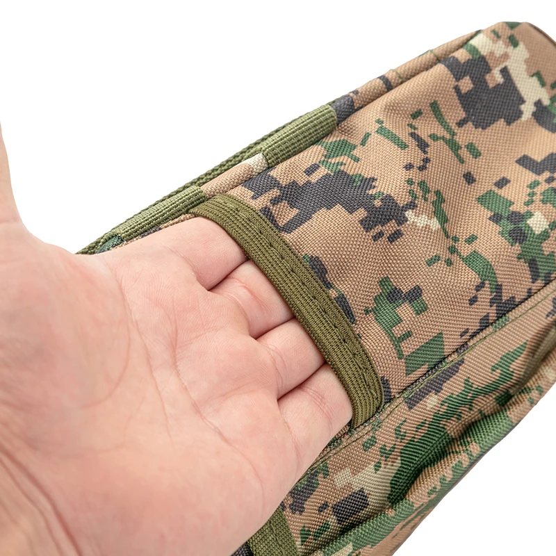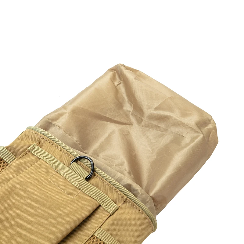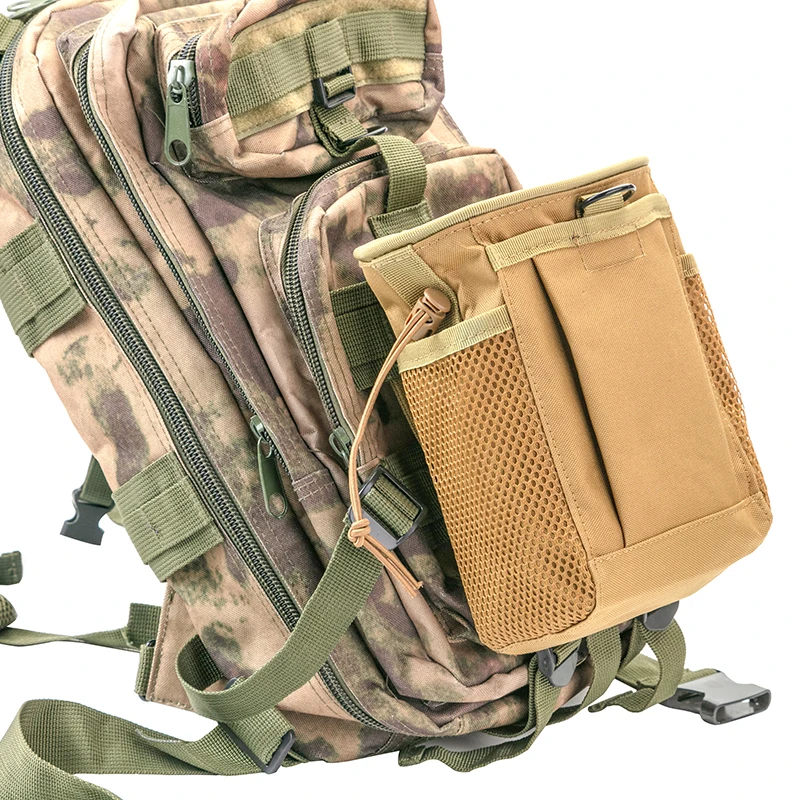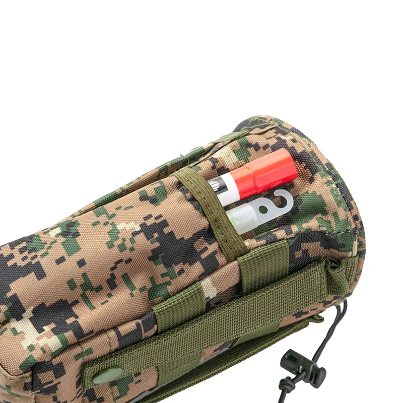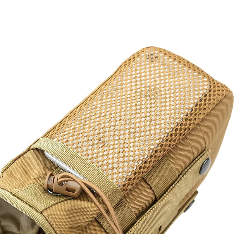 Material: nailon impermeable Dimensiones: 20x14x9cm Peso: 167g Equipado con compartimento principal, bolsillo frontal y dos bolsillos laterales La cuerda equipada puede evitar que las cosas se caigan Puede contener alimentos, aperitivos u otros artículos ligeros Se puede conectar con cualquier chaleco, bolsa, cinturón o Mochila de tela molle Hecho de material de nailon duradero Resistente al agua para uso en exteriores