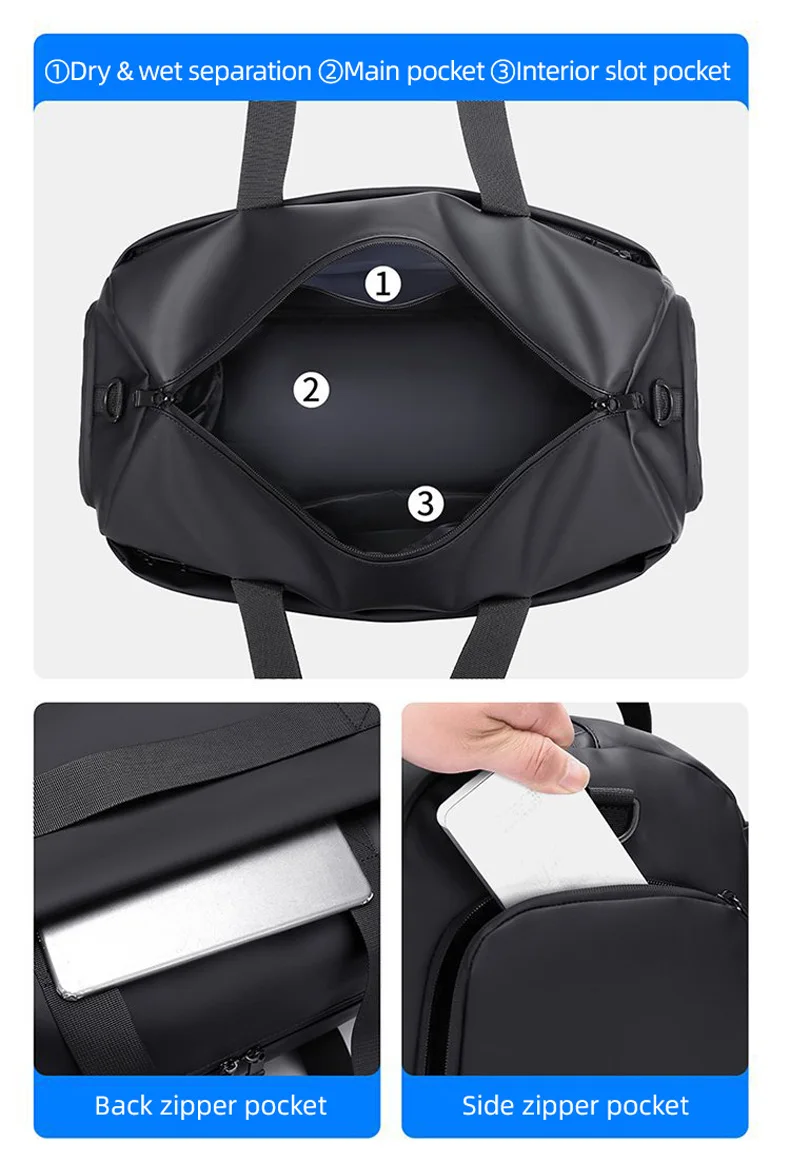 3. Wet and dry separation bag: The wet and dry separation bag is designed with a waterproof partition for both wet and dry use.