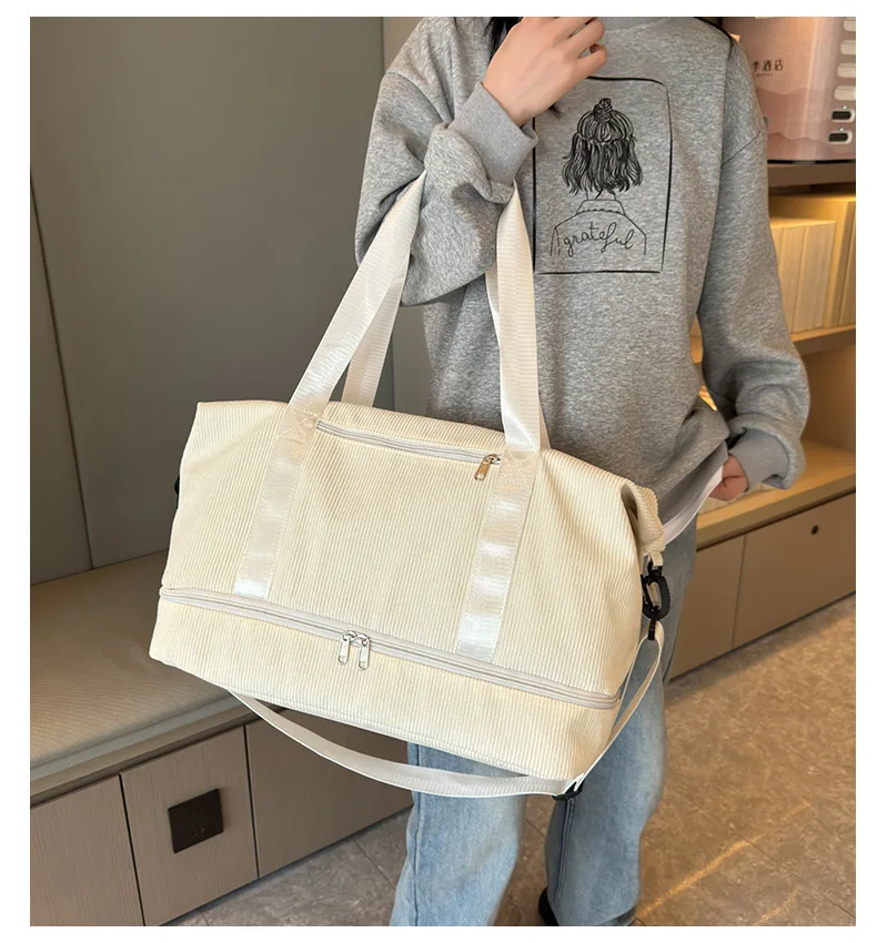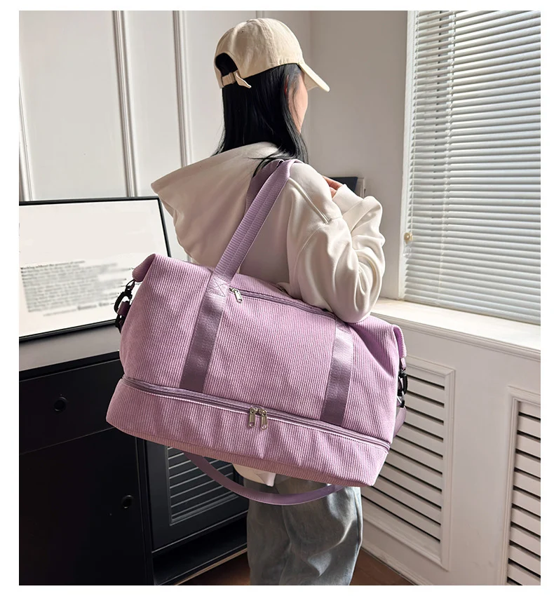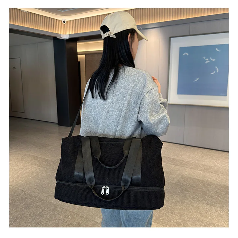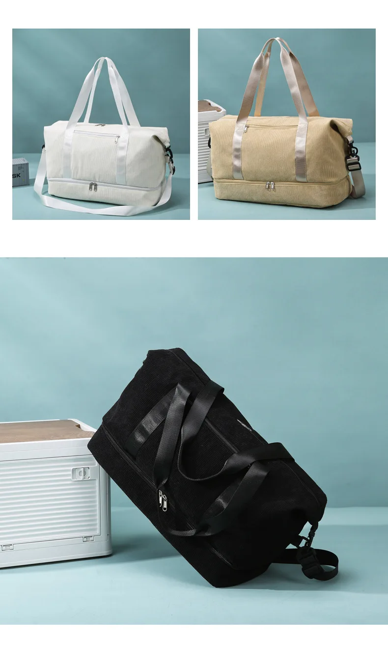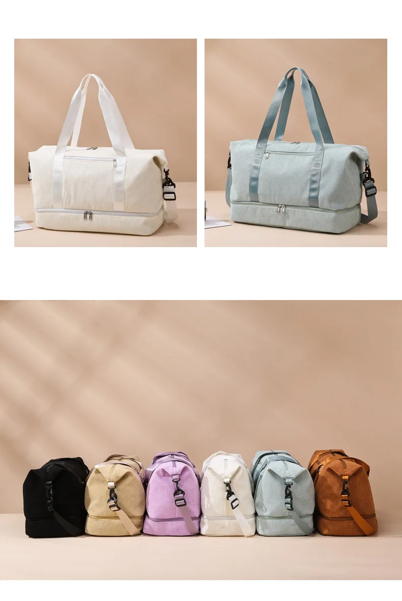 Bolsa de viaje de gran capacidad, bolsa de gimnasio deportiva ligera de pana, bolsas de embarque con separación en seco y húmedo