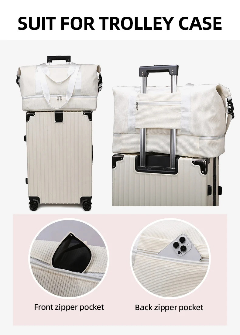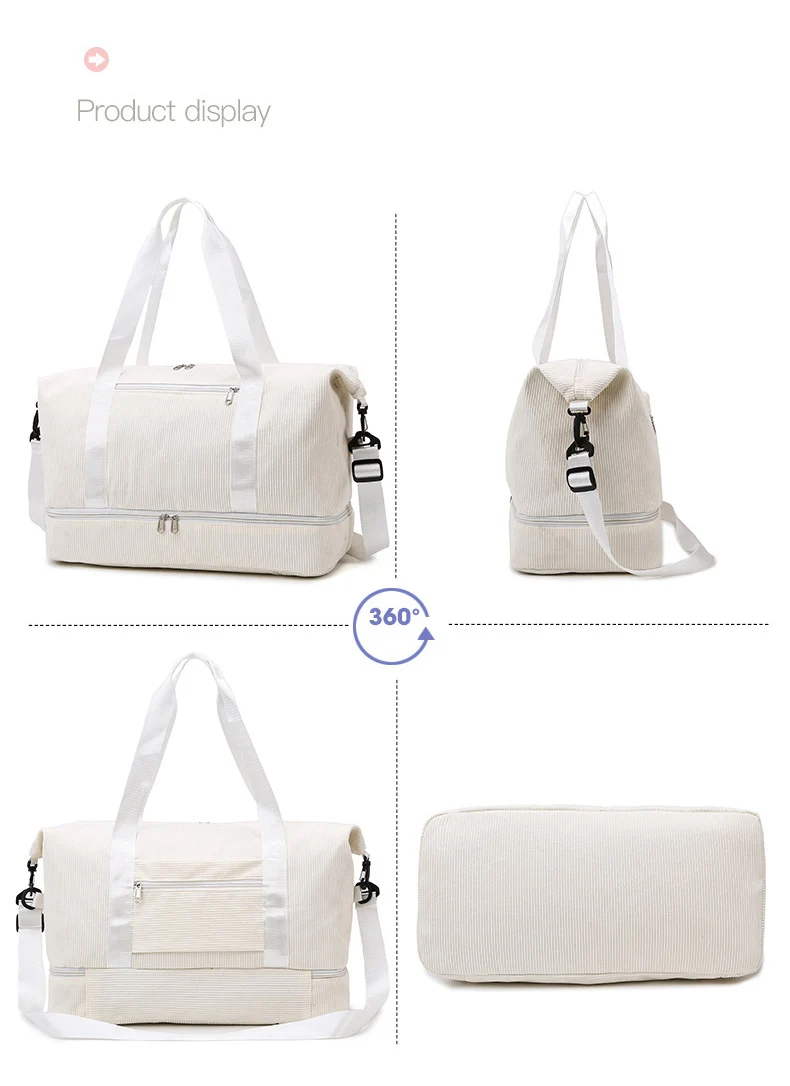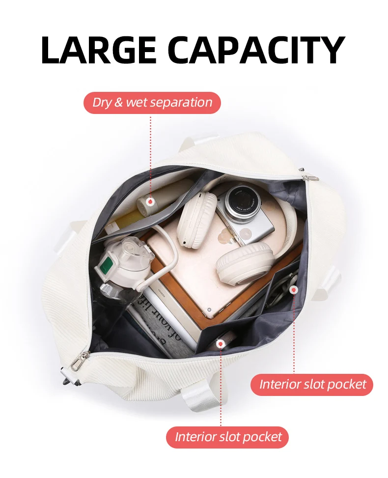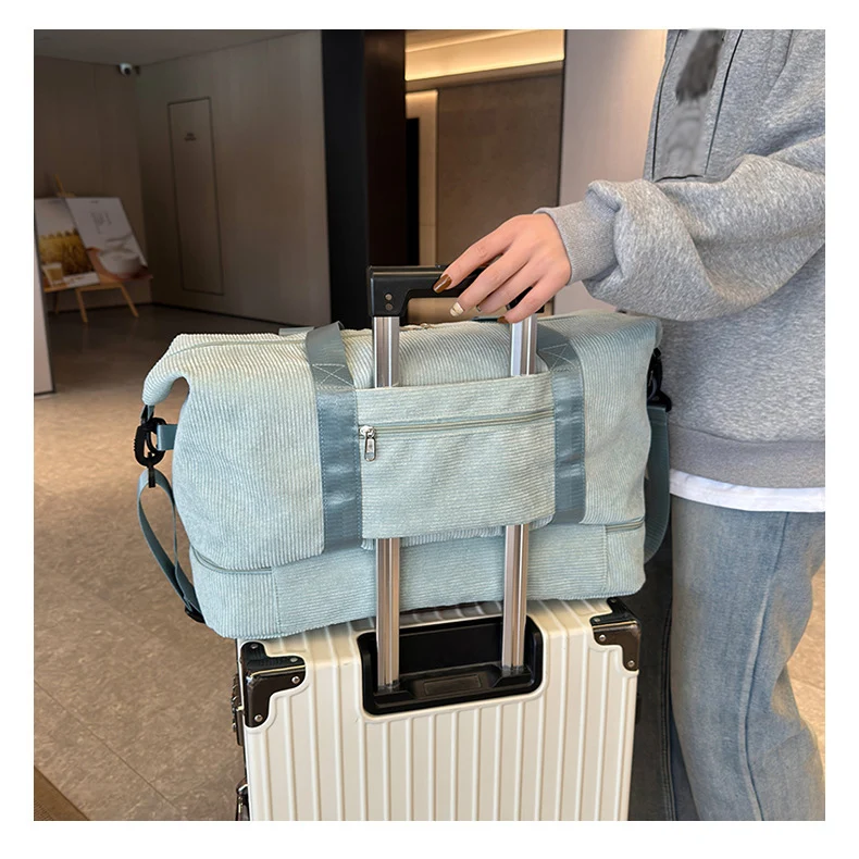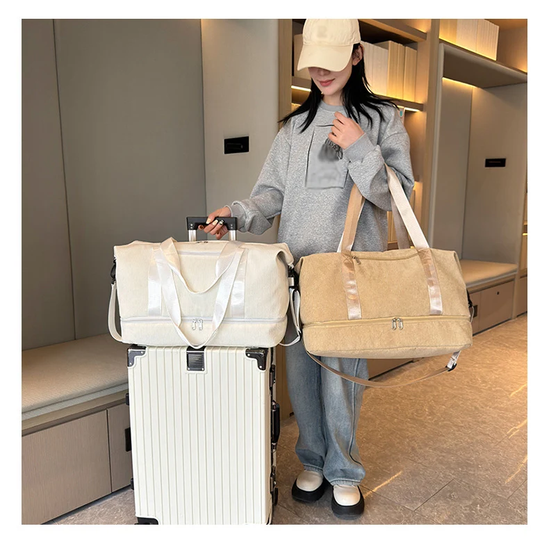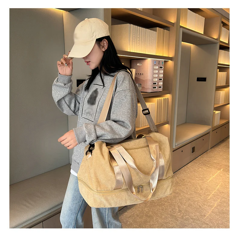Bolsa de viaje de gran capacidad, bolsa de gimnasio deportiva ligera de pana, bolsas de embarque con separación en seco y húmedo