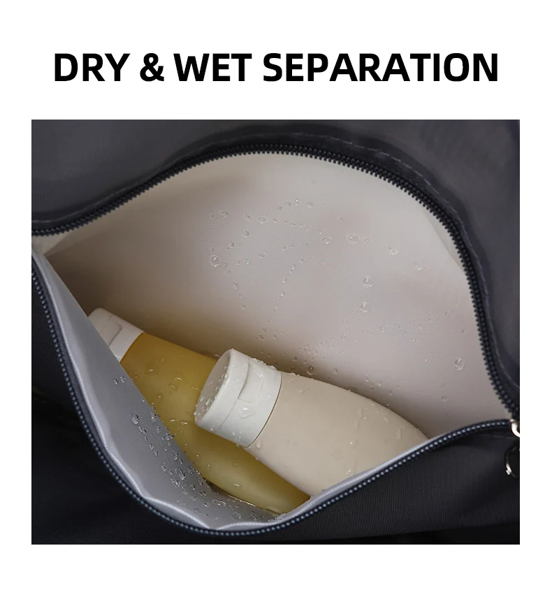 2. Separación húmeda y seca, con caja de zapatos independiente, inserto de cremallera trasera, con uso de equipaje, comodidad de viaje