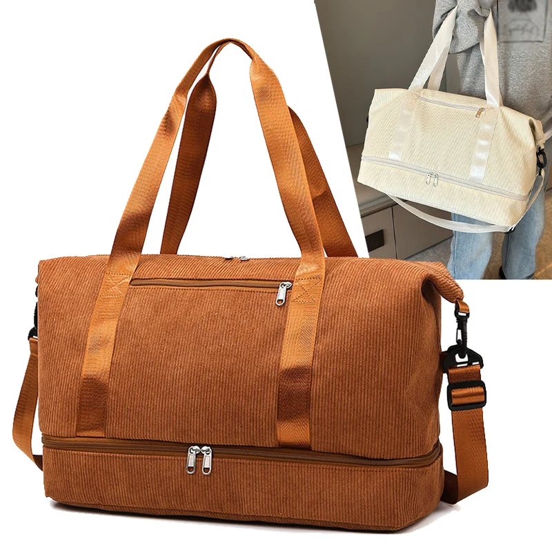 Bolsa de viaje de gran capacidad, bolsa de gimnasio deportiva ligera de pana, bolsas de embarque con separación en seco y húmedo