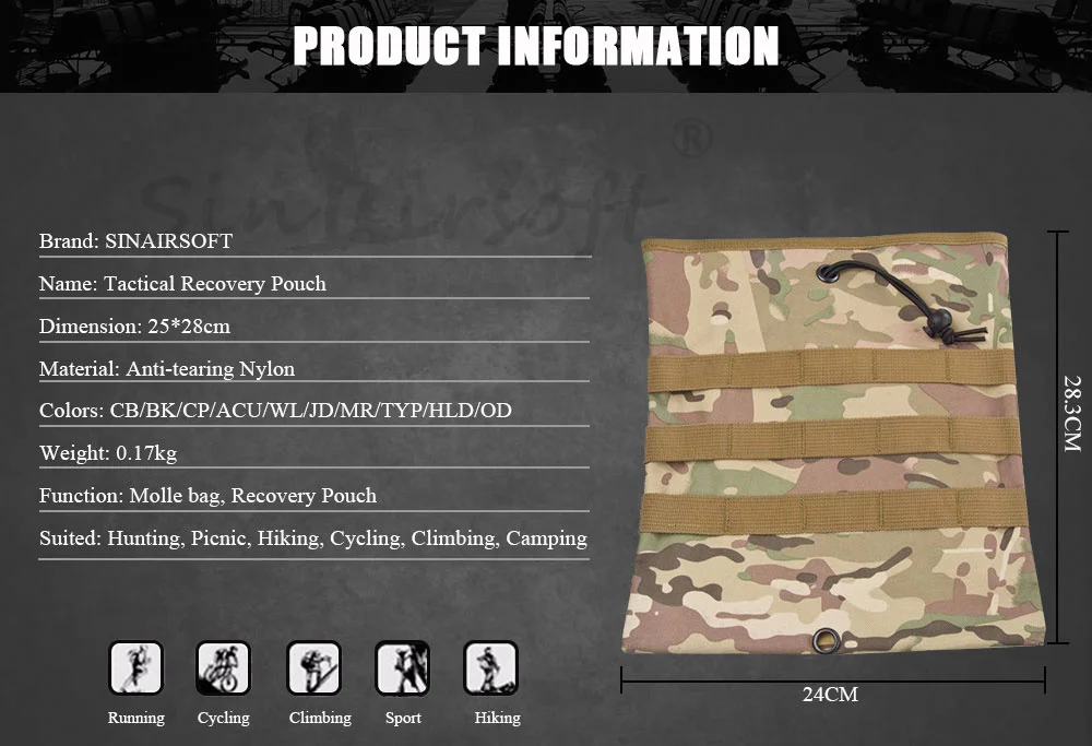 Hay 3 bucles de cinturón de nailon que se pueden unir a su cinturón o chaleco, mochila y cualquier otro equipo Molle