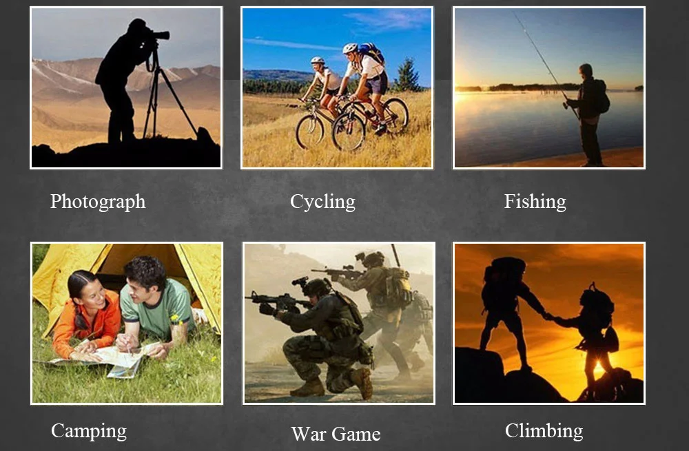 Adecuado: caza, Picnic, senderismo, ciclismo, escalada, Camping