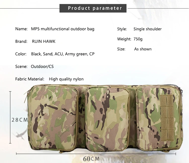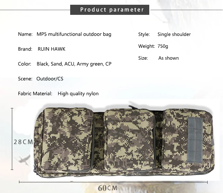 Bolsa deportiva multifuncional 60cm MP5 bolsa táctica para armas caza Airsoft