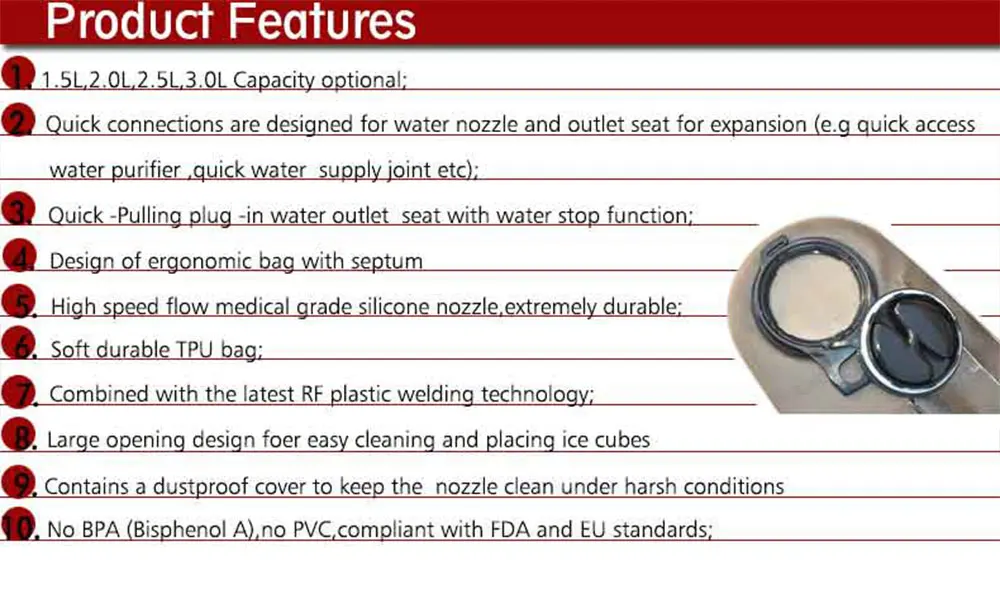 * La funda aislante de la tubería de agua está hecha de material de neopreno SBR, que puede aliviar el fenómeno de congelación interna de la tubería de agua cuando se usa en invierno (Nota: solo la bolsa de agua de la opción Azul no viene con esta funda de aislamiento) e, verde militar.