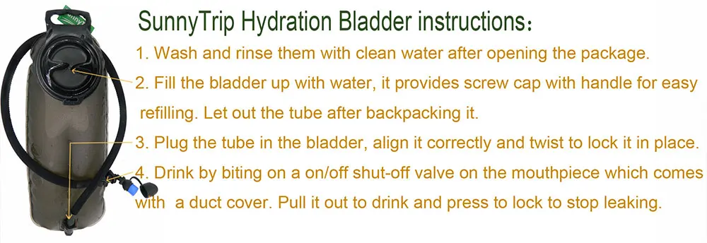 Instrucciones de hidratación de la vejiga SunnyTrip: