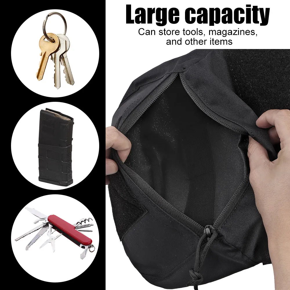 2.ADICIONAMIENTO ADICIONAL: La bolsa táctica se puede montar debajo de la solapa frontal del portaplacas, caber en la parte inferior del aparejo de pecho e insertar en el bolsillo de la placa de la mayoría de los portaequipajes, como una "muñeca" adicional sin ocupar ningún habitación MOLLE, asegúrese de tener siempre lo que necesita para el trabajo a mano.Accesorios para portatarjetas utilitarias para llevar.