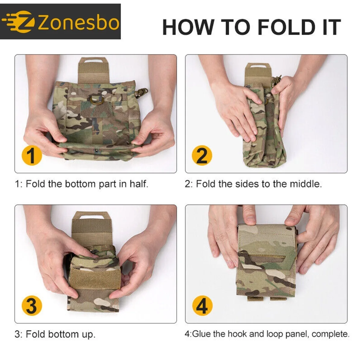 【ALMACENAMIENTO DE GRAN CAPACIDAD】La bolsa Molle Dump tiene un bolsillo superior abierto con cordón principal para guardar 6 cargadores AR/AK 30 rondas, recopilar conchas/balones gastados y evitar que se caigan y mantener su área limpia.También puedes limpiar la basura rápidamente como una sencilla bolsa multiusos "escavajero".