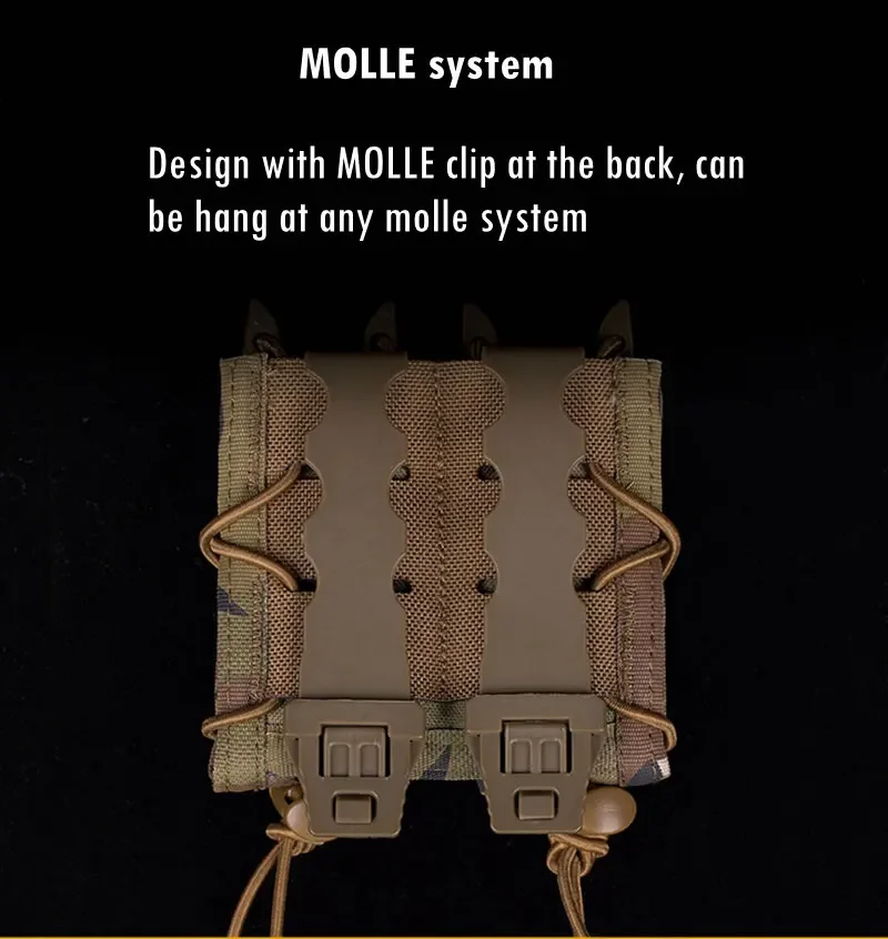 ●Sistema MOLLE. Diseño con clip MOLLE en la parte posterior, se puede colgar en cualquier sistema Molle.