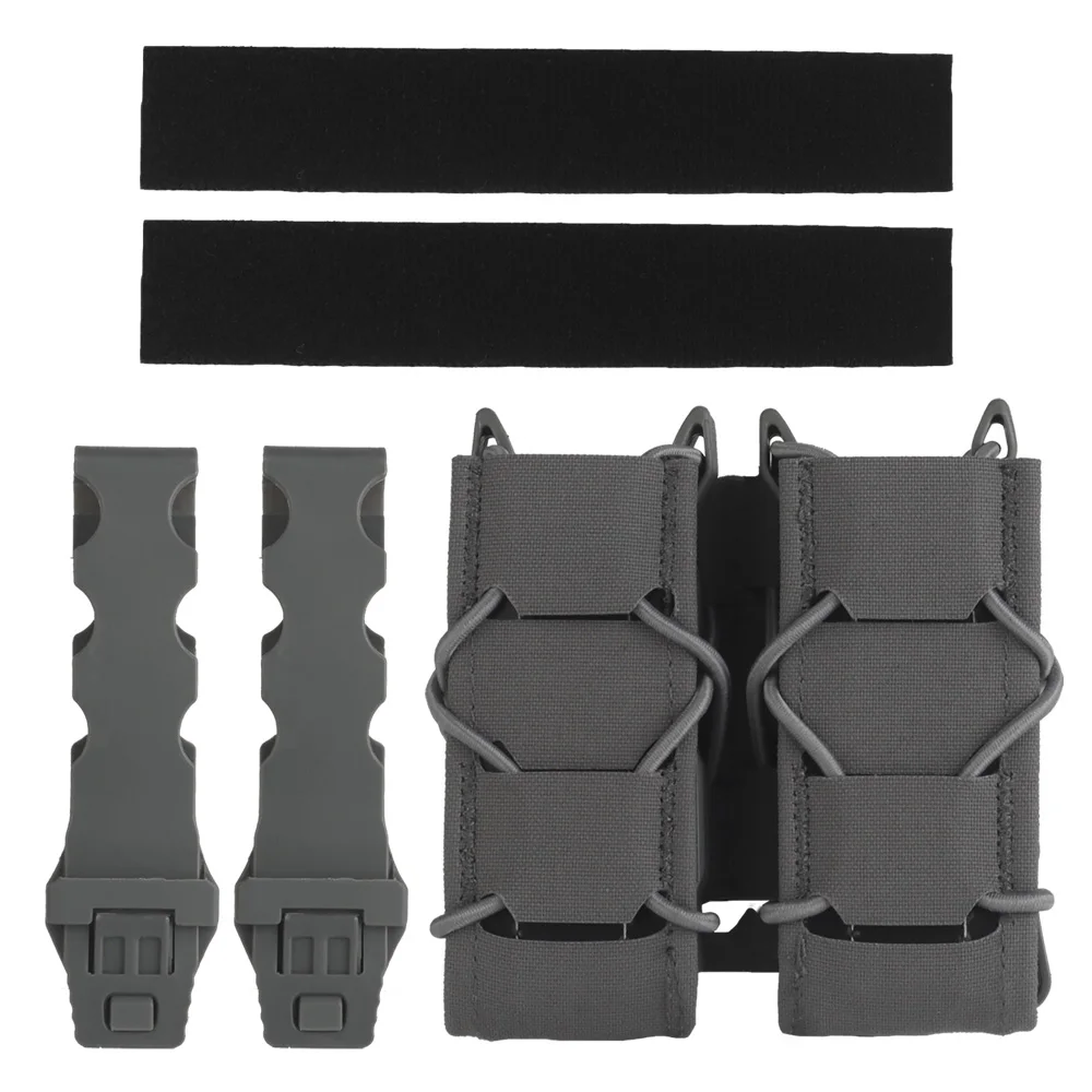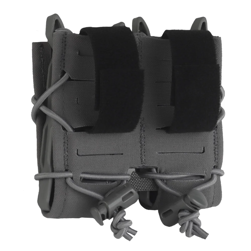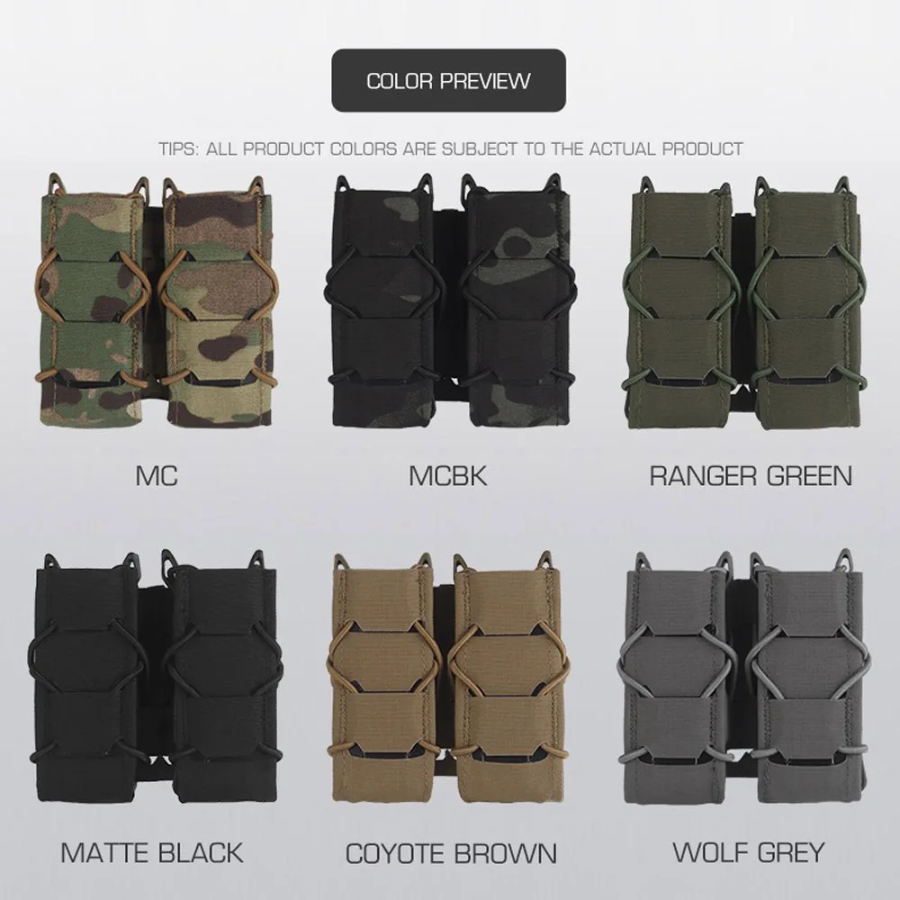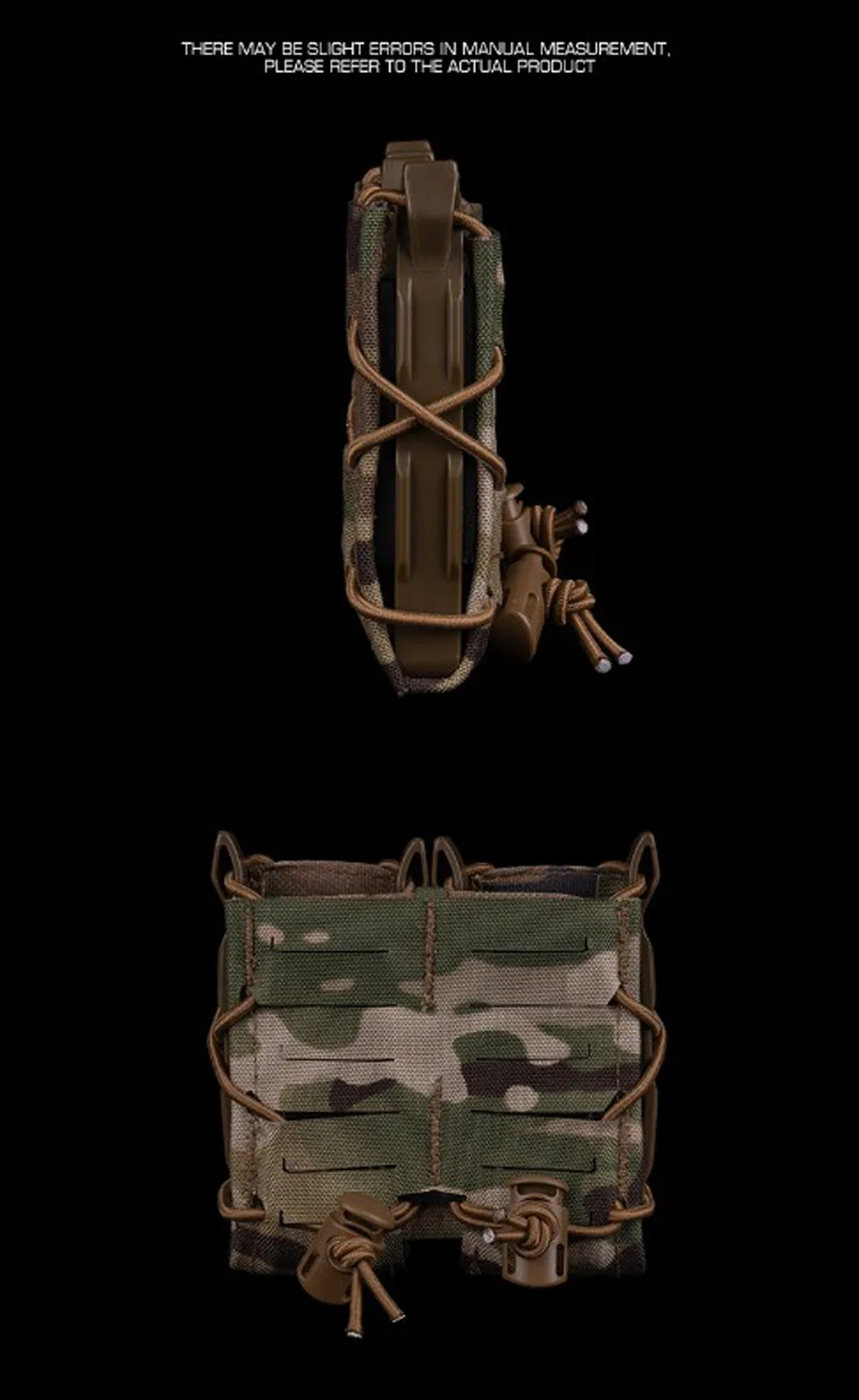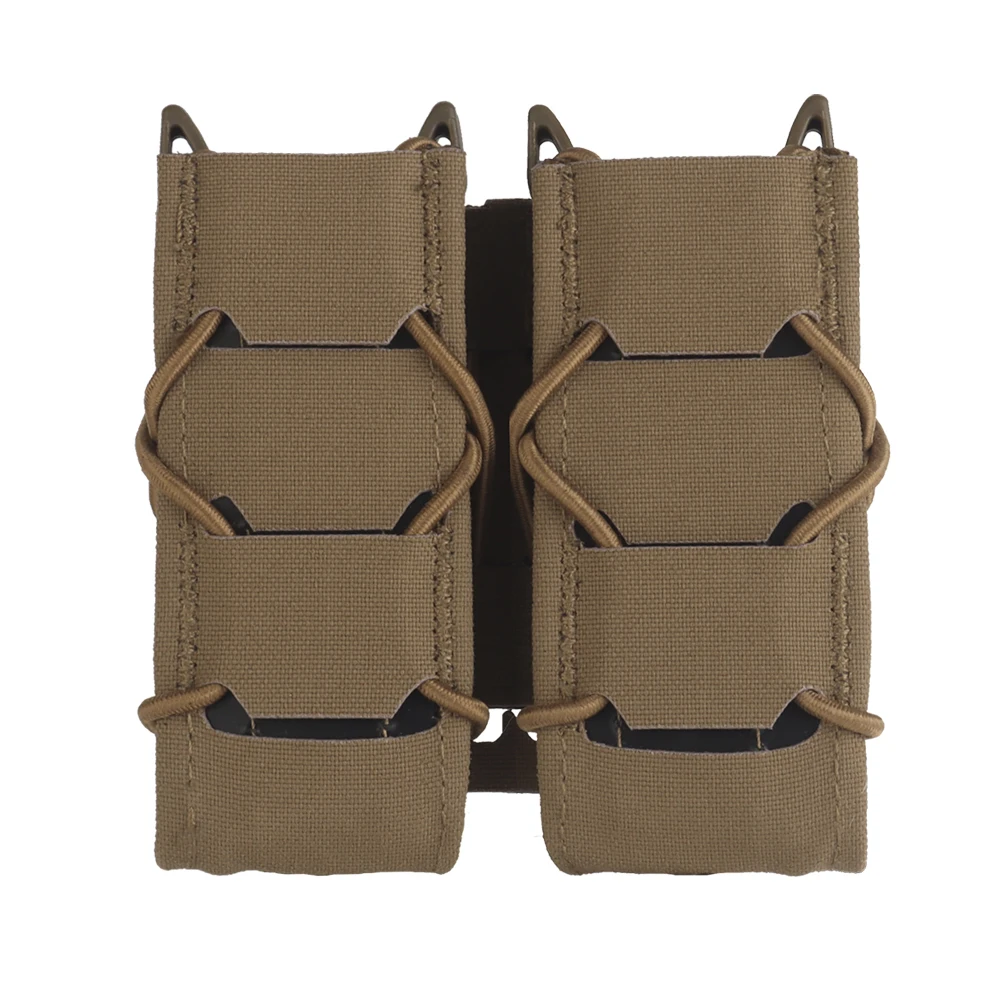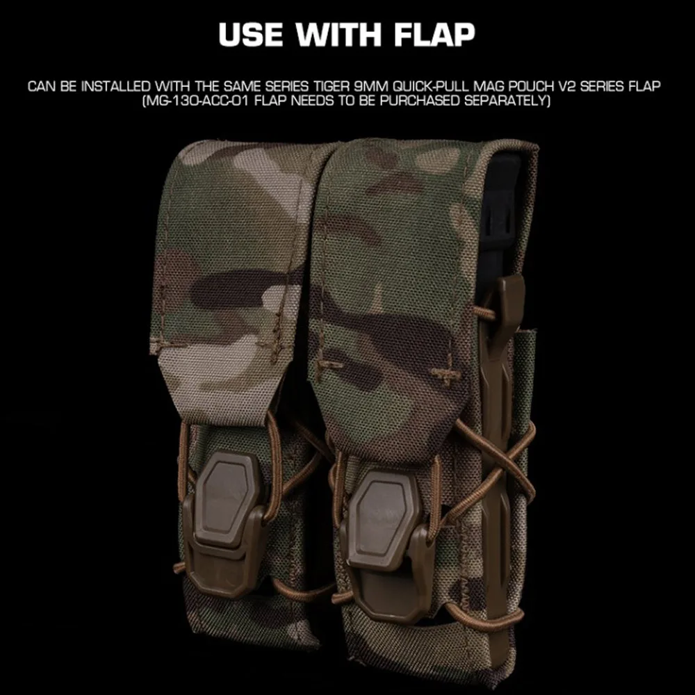 Nombre del producto: Bolsa doble Mag Tiger de 9MM V2 Número de artículo.:MG-131 Tamaño del producto: 14,7 * 11,7 * 5,2 CM Peso neto del producto: 0,09 kg. Peso bruto del producto: 0,142 kg. Color del producto: Negro mate/Marrón coyote/Verde Ranger/Gris Wolf/MC/MCBK Material principal: Cordura Escena aplicable: caza, deportes al aire libre y otros accesorios tácticos de atletismo Airsoft CS, etc.