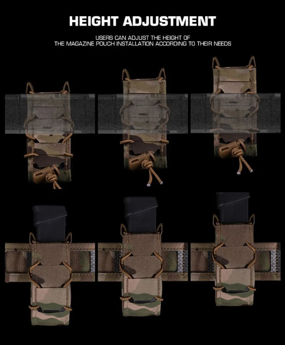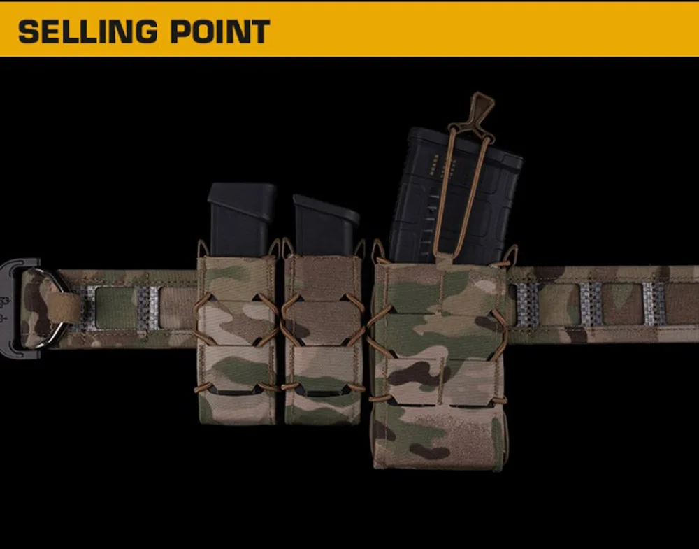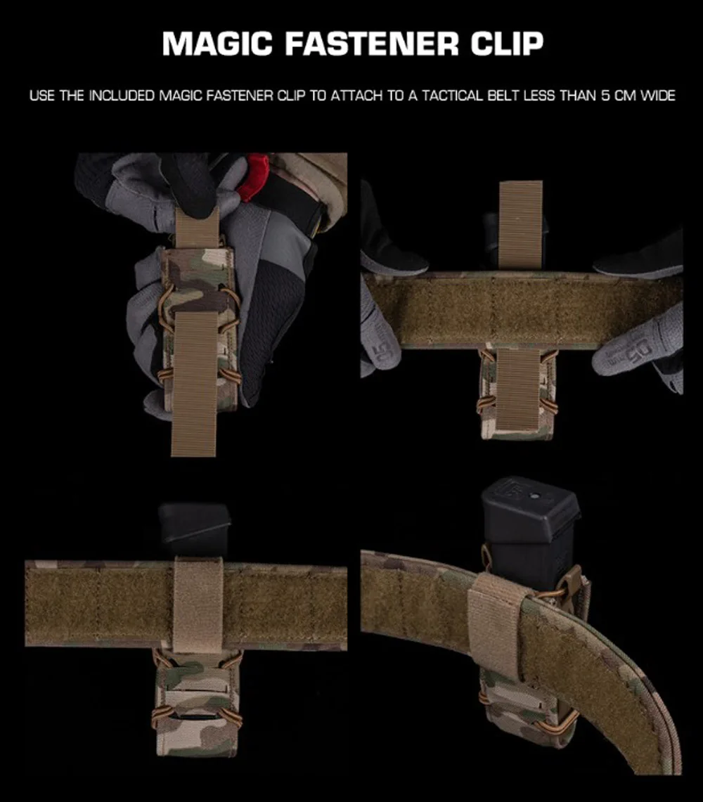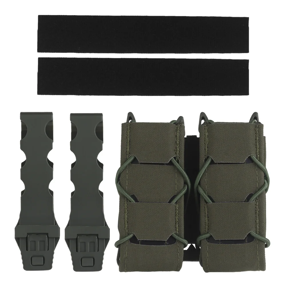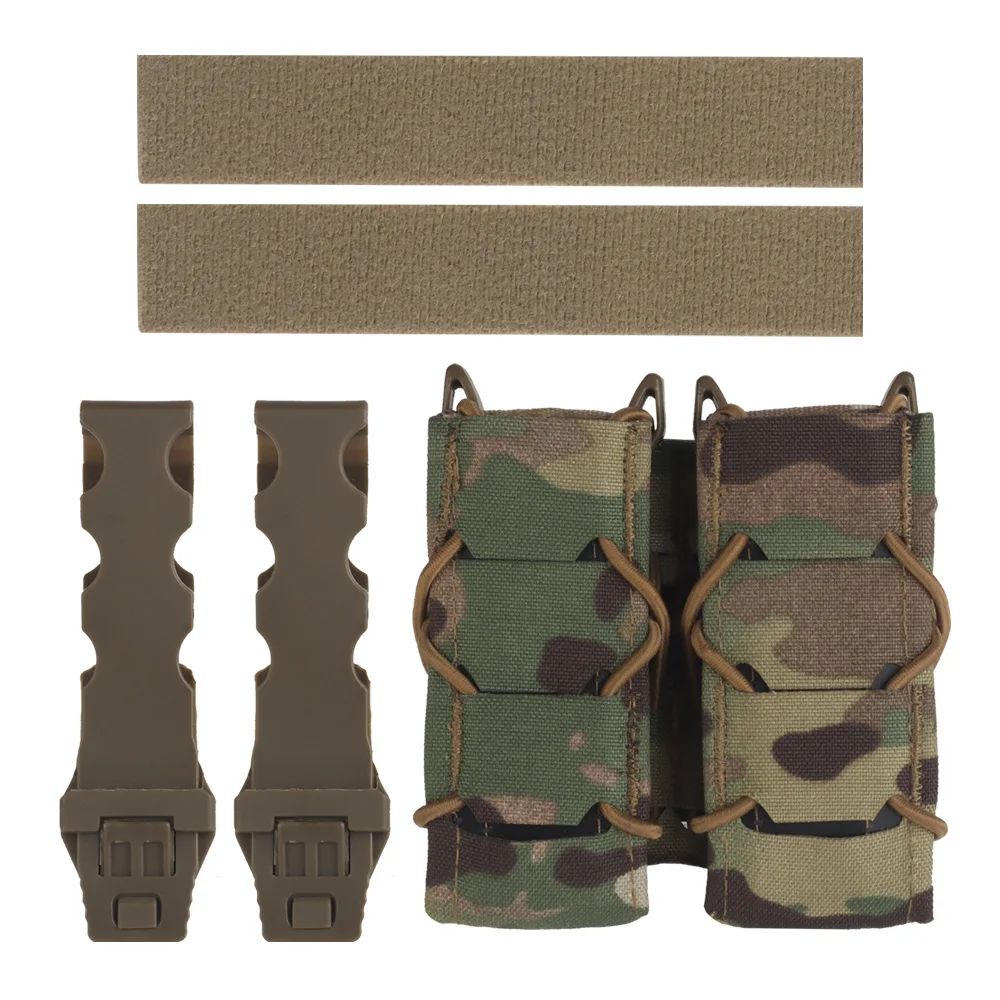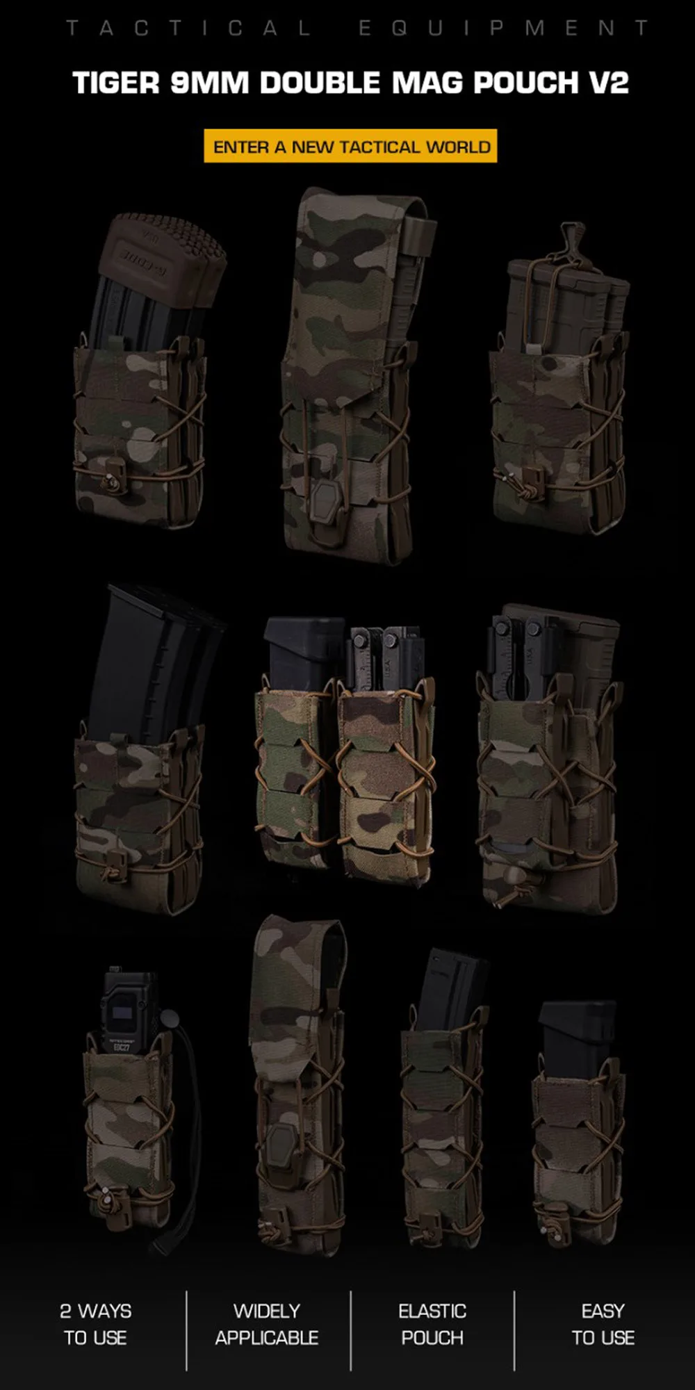 Nombre del producto: Bolsa doble Mag Tiger de 9MM V2 Número de artículo.:MG-131 Tamaño del producto: 14,7 * 11,7 * 5,2 CM Peso neto del producto: 0,09 kg. Peso bruto del producto: 0,142 kg. Color del producto: Negro mate/Marrón coyote/Verde Ranger/Gris Wolf/MC/MCBK Material principal: Cordura Escena aplicable: caza, deportes al aire libre y otros accesorios tácticos de atletismo Airsoft CS, etc.