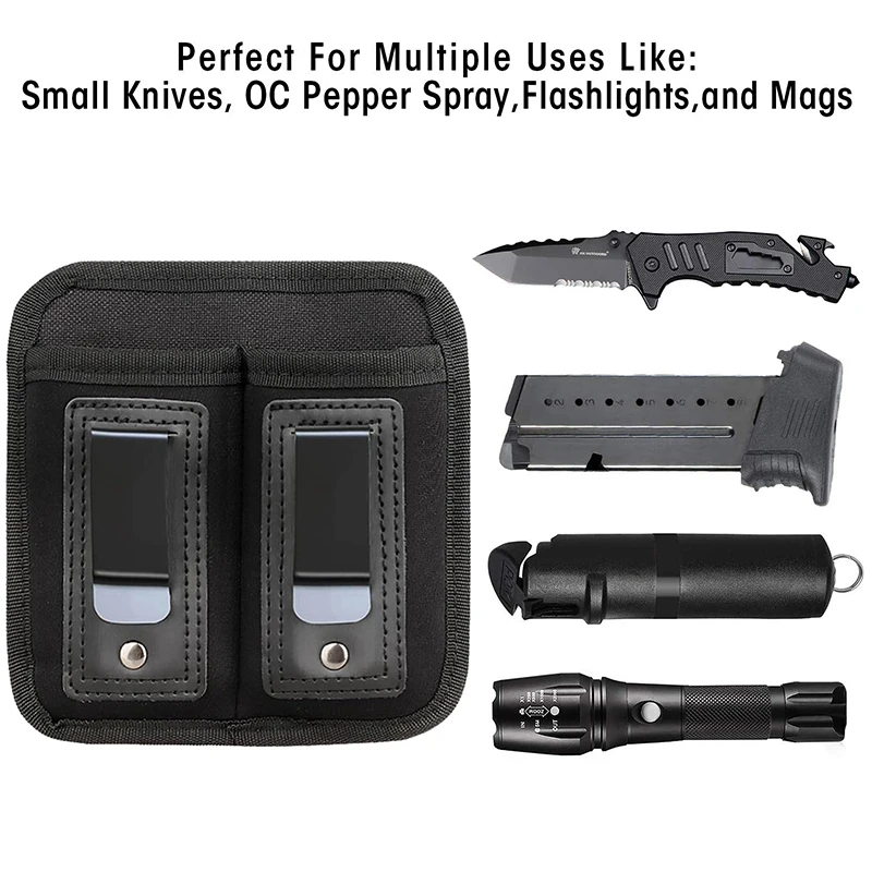 ✔REVISTA EXTRA, CUCHILLO O FUNDA NO LETAL: Un soporte de cargador doble en un paquete. Esta funda de neopreno con clip para cinturón se puede utilizar para su revista adicional, un cuchillo plegable o incluso algún equipo no letal como spray de pimienta o una pistola eléctrica.