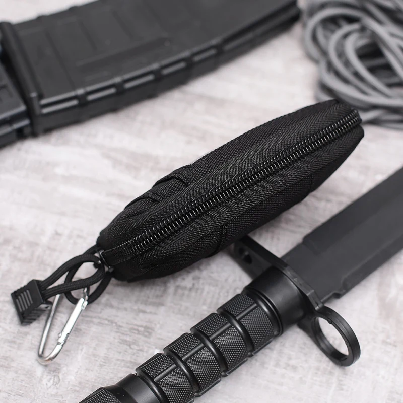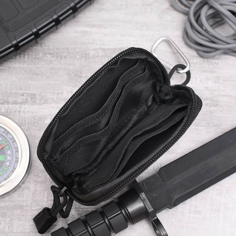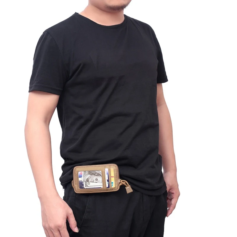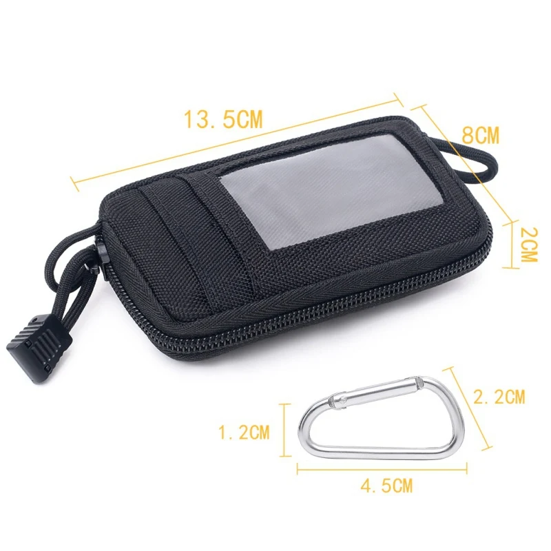 1. Un pequeño monedero tiene el tamaño de una cinta de casete, con ranuras para tarjetas y cremalleras impermeables para mantener los artículos seguros y organizados.