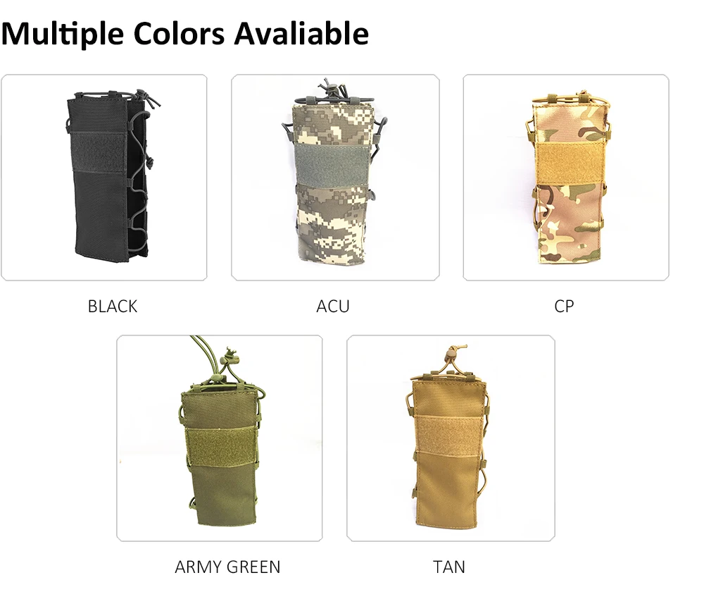 -Material: tela de nailon -Tamaño: 8,5x6x20cm/7,9*3,3*2, 3in -Uso: se puede utilizar para instalar botellas de bebidas, botellas de vino, termos y walkie-talkie Y otros artículos, el uso de simple y rápido, con peso ligero, características duraderas.