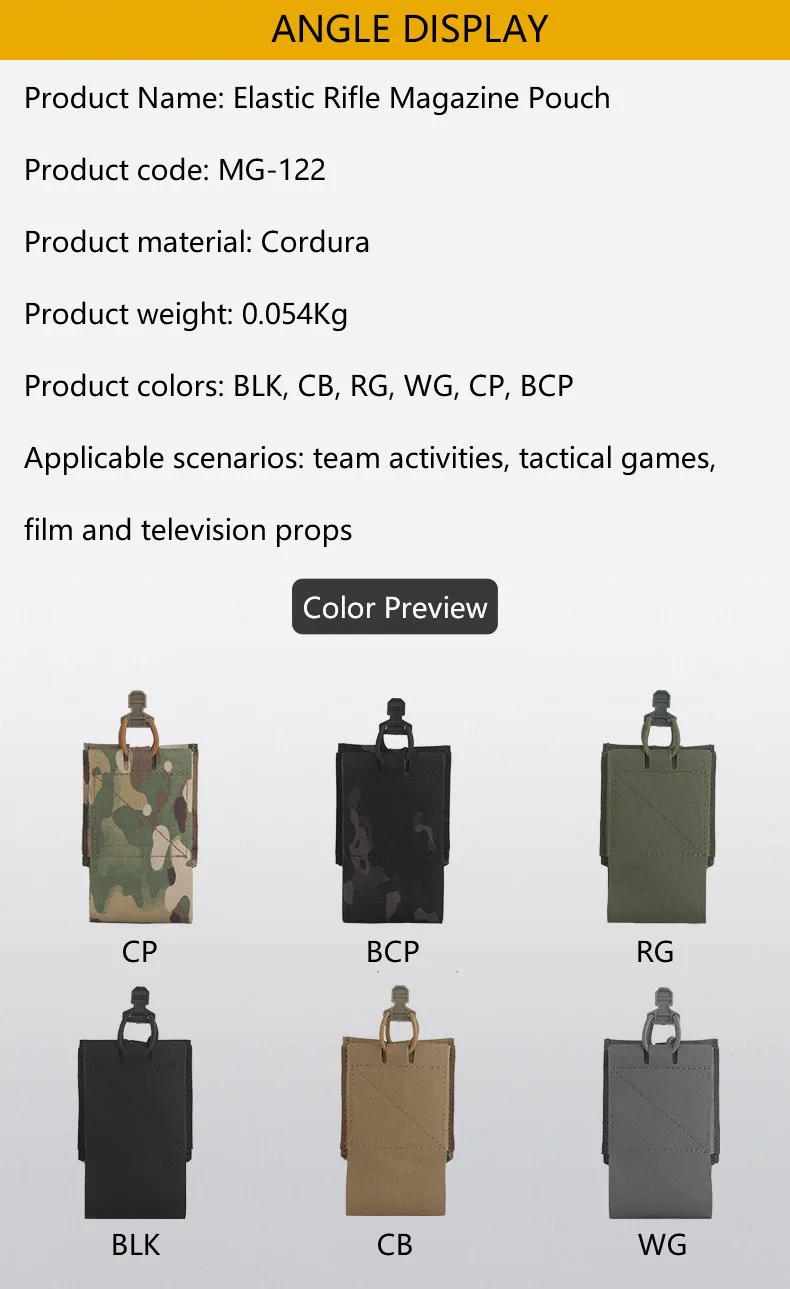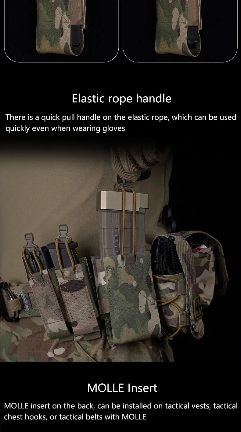 Bolsa elástica para cargador de Rifle, materiales elásticos, mango de cuerda elástica, inserto MOLLE, ampliamente aplicable