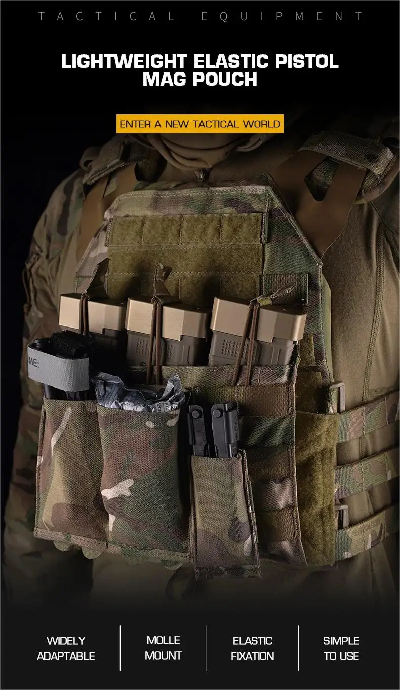 Bolsa elástica ligera para pistola mag, bolsa táctica para revistas de 9mm.40.45ACP, bolsa para cinturón Molle