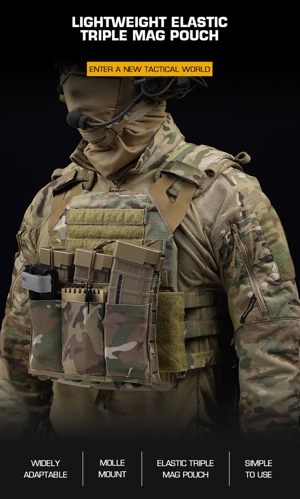 Bolsa elástica para cargador 5,56/7,62, triple ligera, caza al aire libre, tiro, Airsoft, soporte Mag, bolsa MOLLE, equipo de chaleco táctico