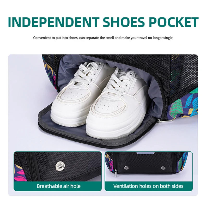 1.Juego de bolso principal de gran capacidad, bolsillo con cremallera incorporado, múltiples bolsillos laterales con cremallera en el cuerpo de la bolsa, con compartimento independiente para zapatos, almacenamiento de zonificación, fácil acceso