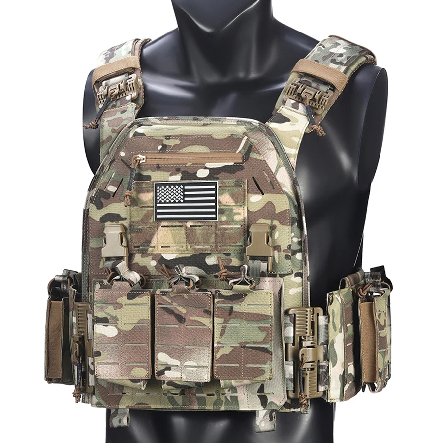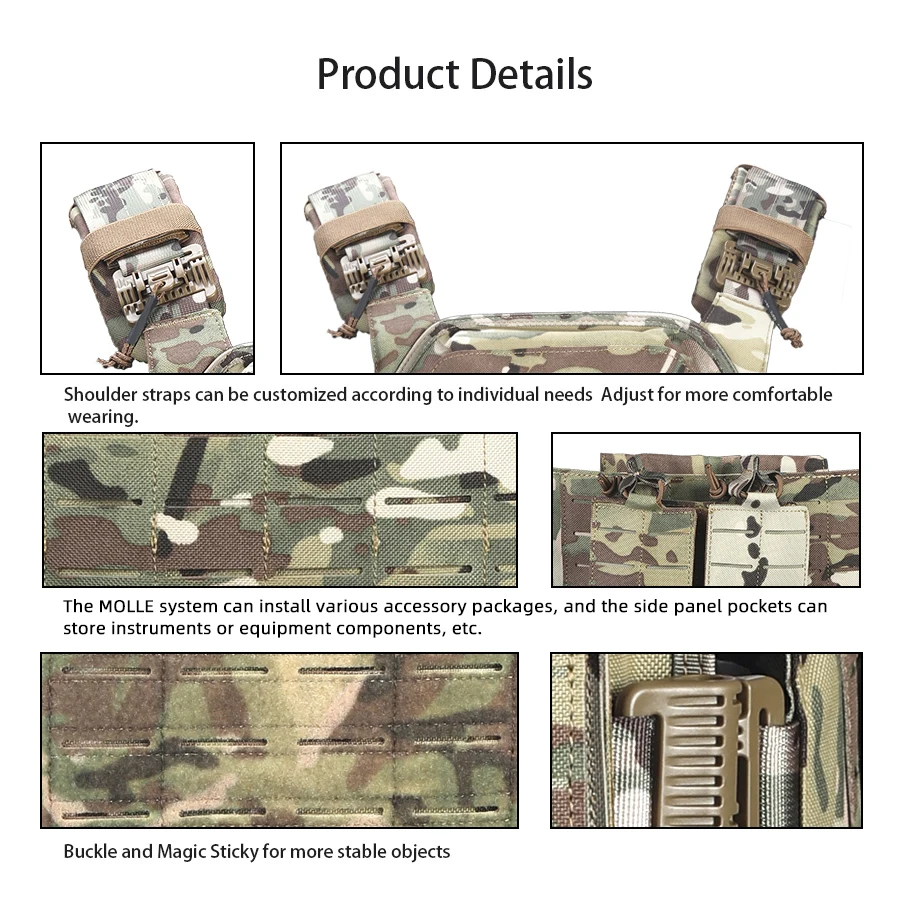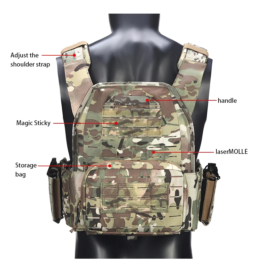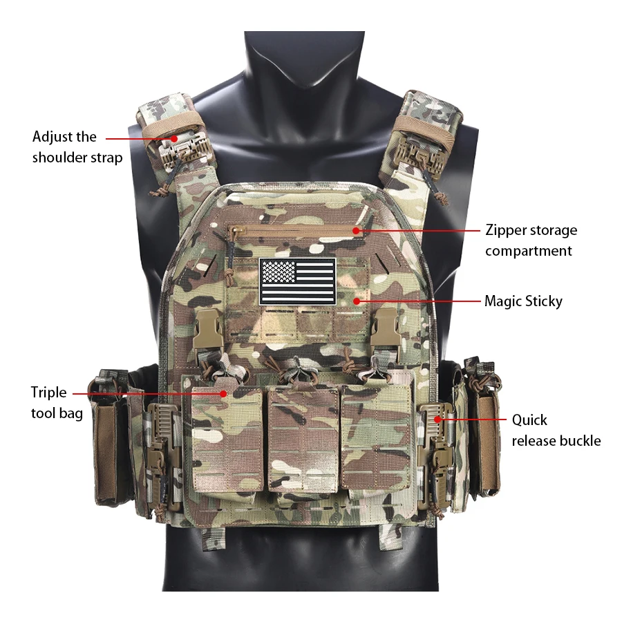 Bolsa de equipo triple multifuncional, chaleco de caza, diseño ligero, tecnología de corte láser con función de expansión potente