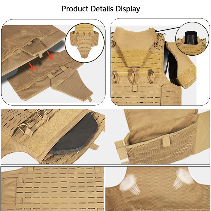 Bolsa de equipo triple oculta en la parte delantera, chaleco de caza, chaleco Molle cortado con láser, ligero y ajustable