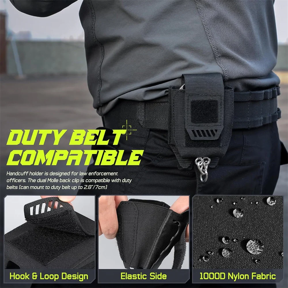 Bolsa para esposas Molle, bolsa con funda para esposas para chaleco con cinturón de servicio, funda para esposas para aplicación de la ley, esposas con cadena/bisagras/plegables/espalda