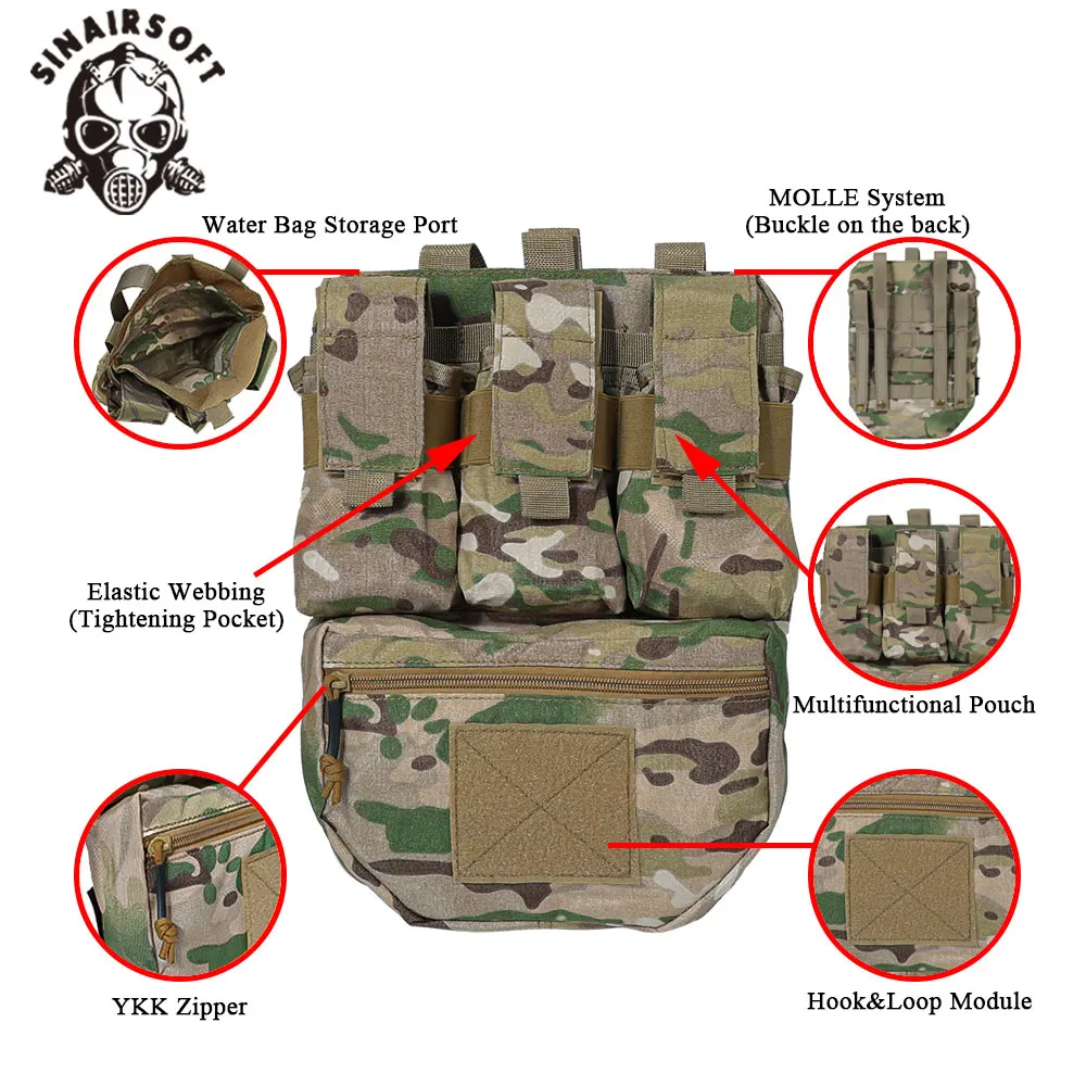 1 sistema de expansión Molle: la parte posterior tiene un sistema de fijación Molle, que se puede usar con el chaleco táctico del sistema Molle. Panel de perfil bajo diseñado para adaptarse a la parte trasera de la mayoría de los portaplacas/sistemas Molle